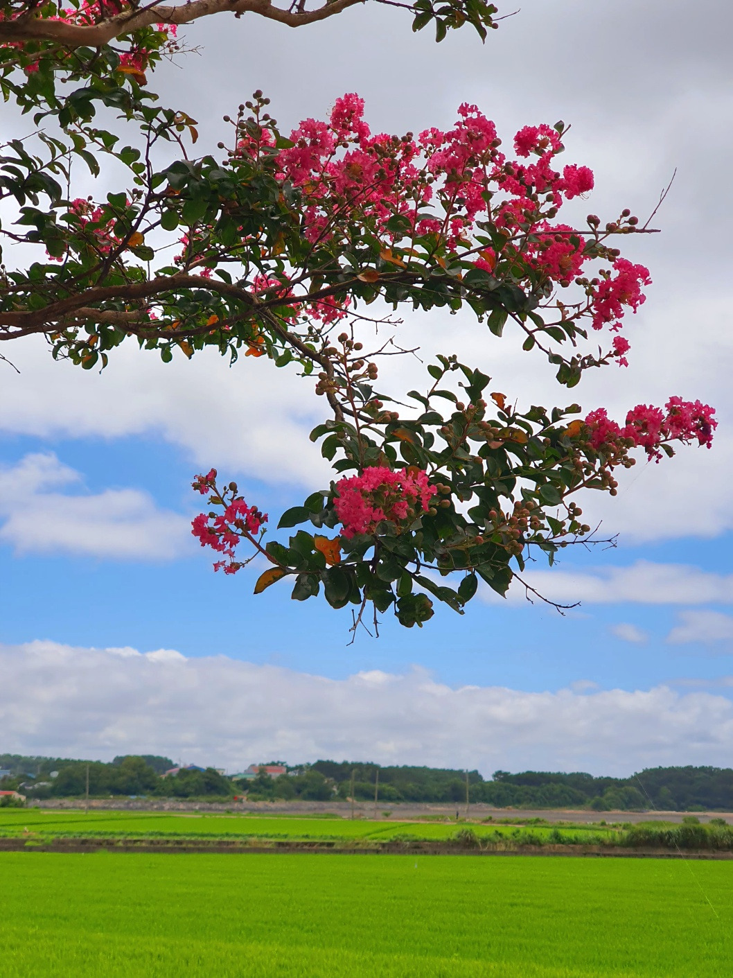 벌써라는 말도 무감각해질정도로 칠월의 마지막 날이군요. 짧은 방학인데도 저는 매일 고등부를 한 두명씩 수업하다 보니, 당연히 방학이란 생각도 없지요. 달마다 세금 처리할 영수증은 어찌나 많은지, 오늘도 시내를 한 바퀴 순례하며 하늘도, 구름도, 꽃도, 바닷가도 슬쩍슬쩍 보고 다녀야겠습니다. ‘오늘이 가기 전에 떠나갈 당신이여~~’라는 모 가수의 가사가 갑자기 스치네요. 저야말로 오늘이 가기 전에 또 제 곁을 떠나갈 수많은 물상과의 인연에 마지막 정을 듬뿍 보여주고 싶습니다. 도종환시인의 <배롱나무>입니다. 봄날의 산책