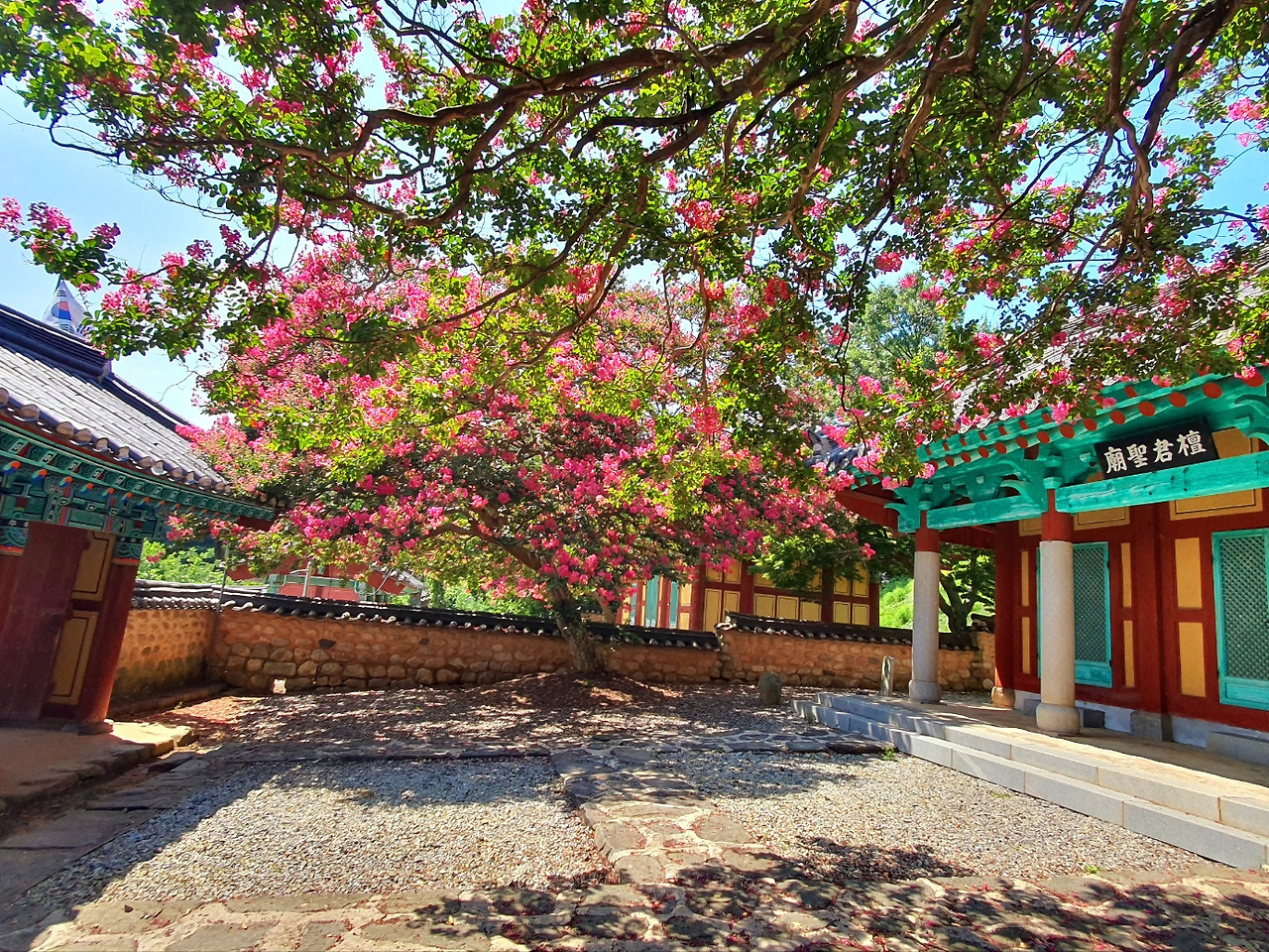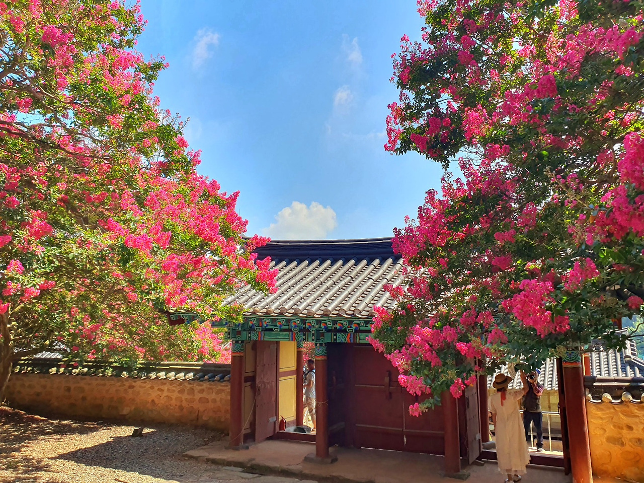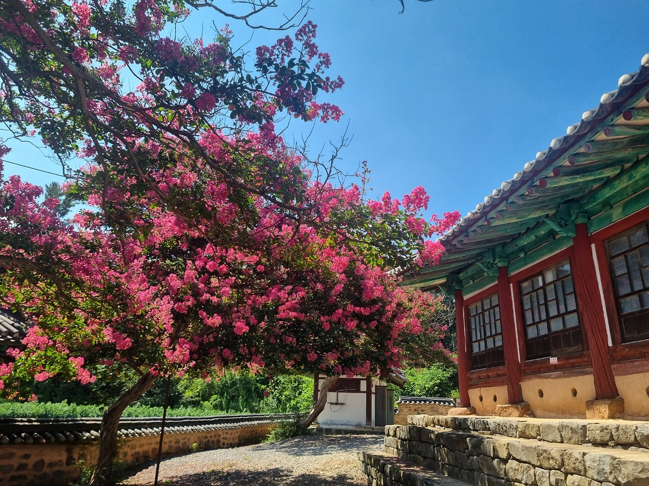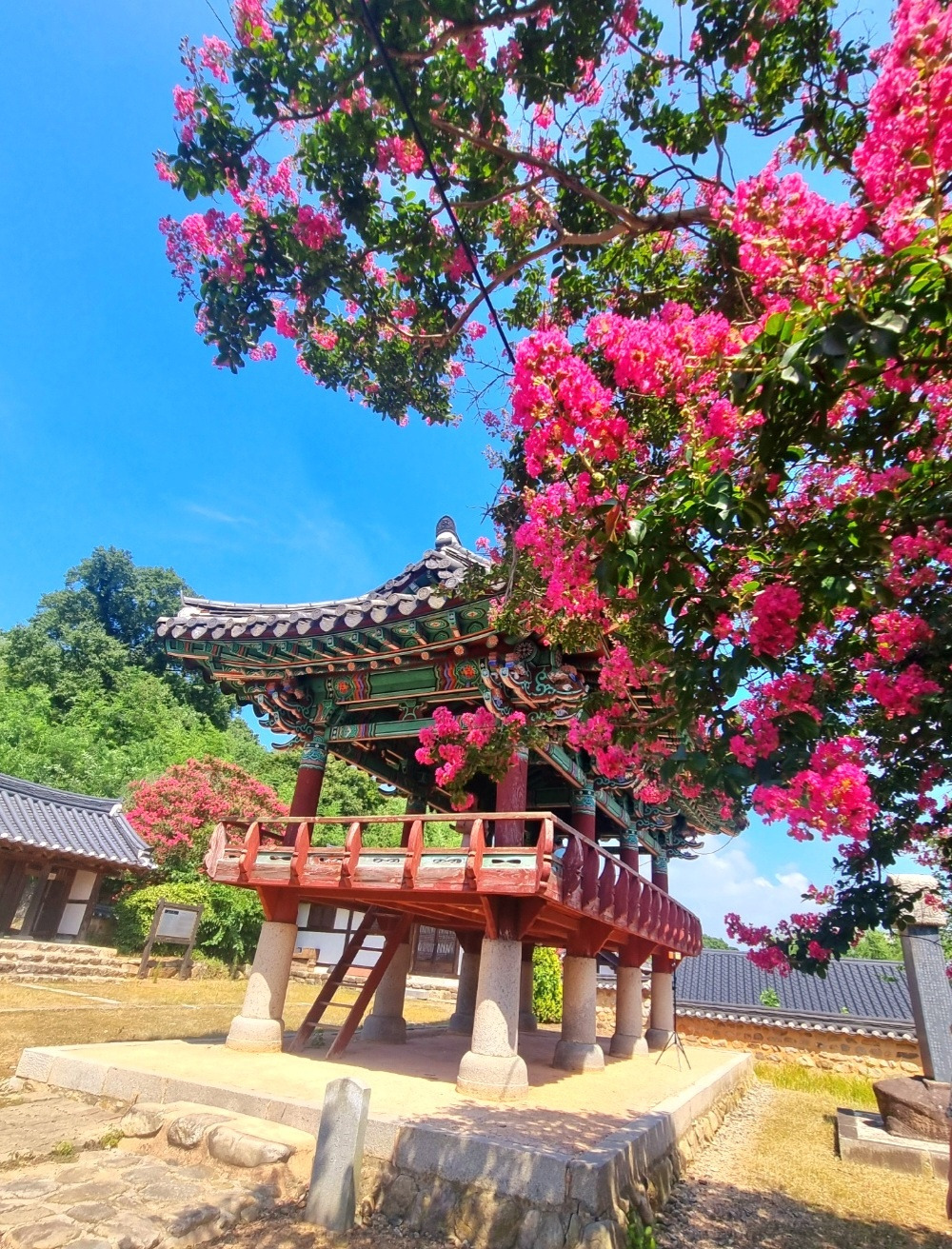 삼복염천(三伏炎天)에 이열치열(以熱治熱)로 여름을 이겨낸다면... 어제가 딱 그런 날이었죠. 말랭이 카페개업을 축하해주러 오신 지인들을 접대하고, 함께 나선 옥구향교 배롱나무꽃길. 며칠 전 서천의 문헌서원 배롱나무 꽃을 보고와서 사진을 올렸더니, 문인들께서 군산의 풍경을 사진으로 도배하시더군요. 바로 일정표에 써놓았죠. ’배롱나무 꽃길 여행기‘~~. 작년 여름에는 전국민이 알고 있는 채상병 희생의 원인이었던 장마비 때문에, 피어난 모든 꽃들이 화색이 돌리지 못하고 사라졌지요. 특히 배롱나무꽃들의 사연들이 더 안타까웠던지라, 올해는 원 없이 사진 찍어보리라 다짐하고 있었답니다.
