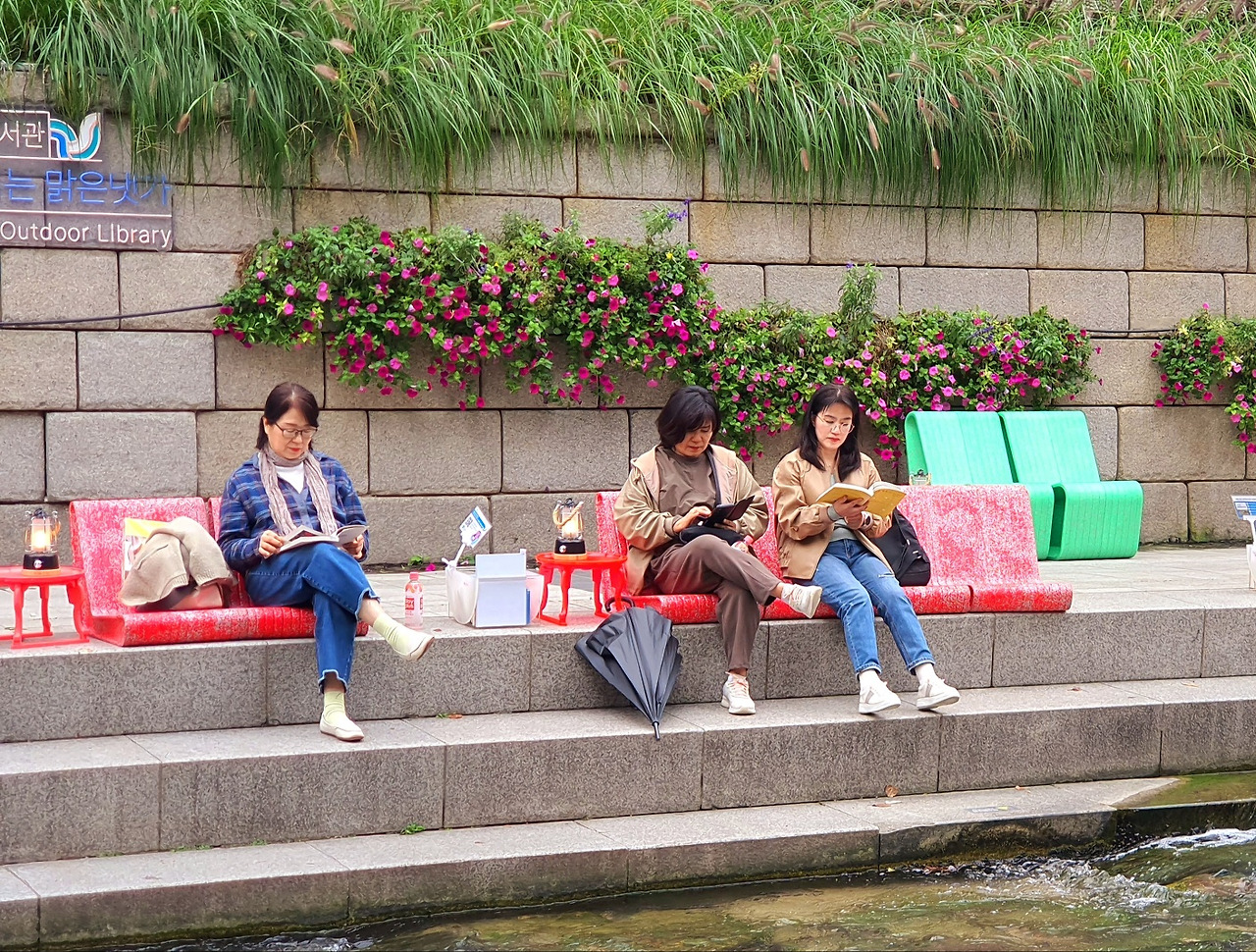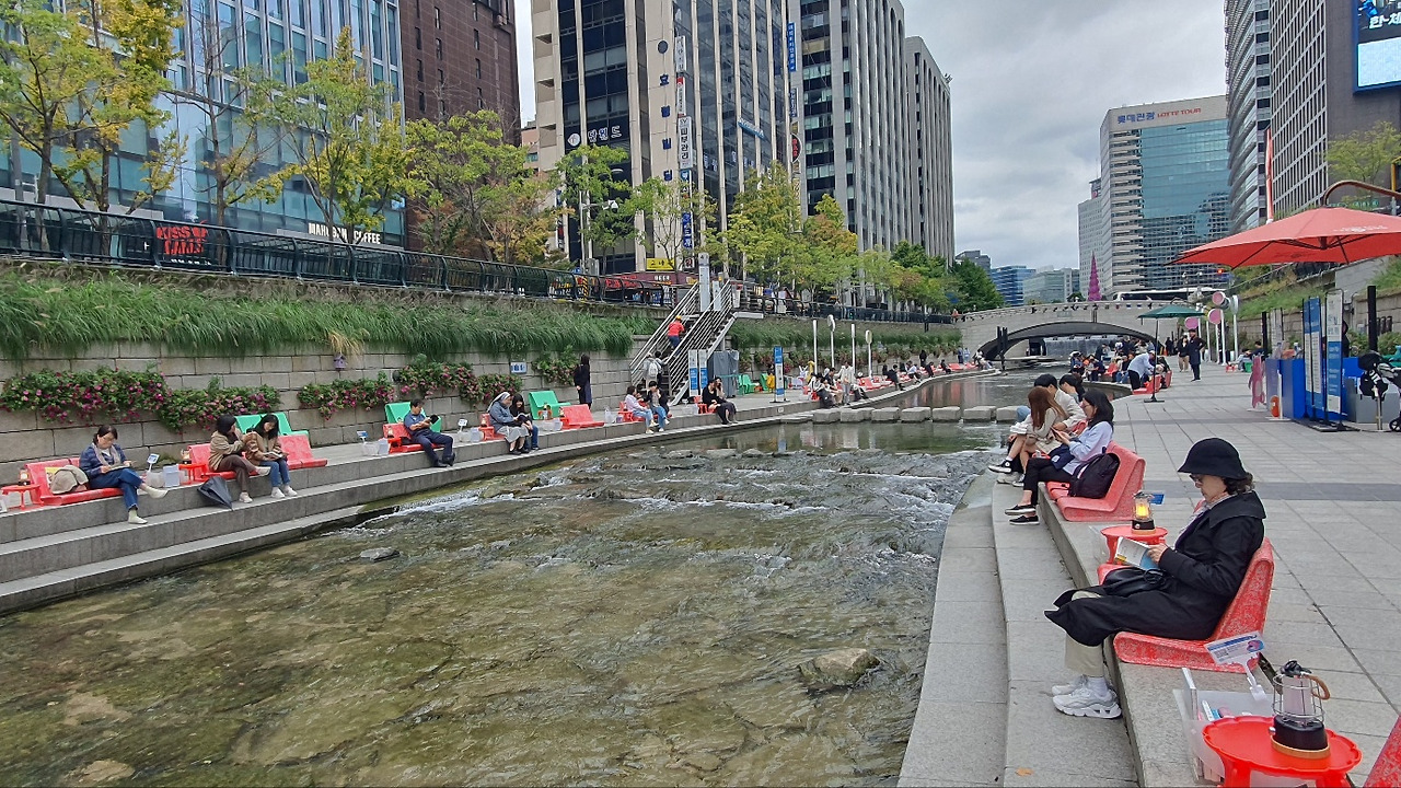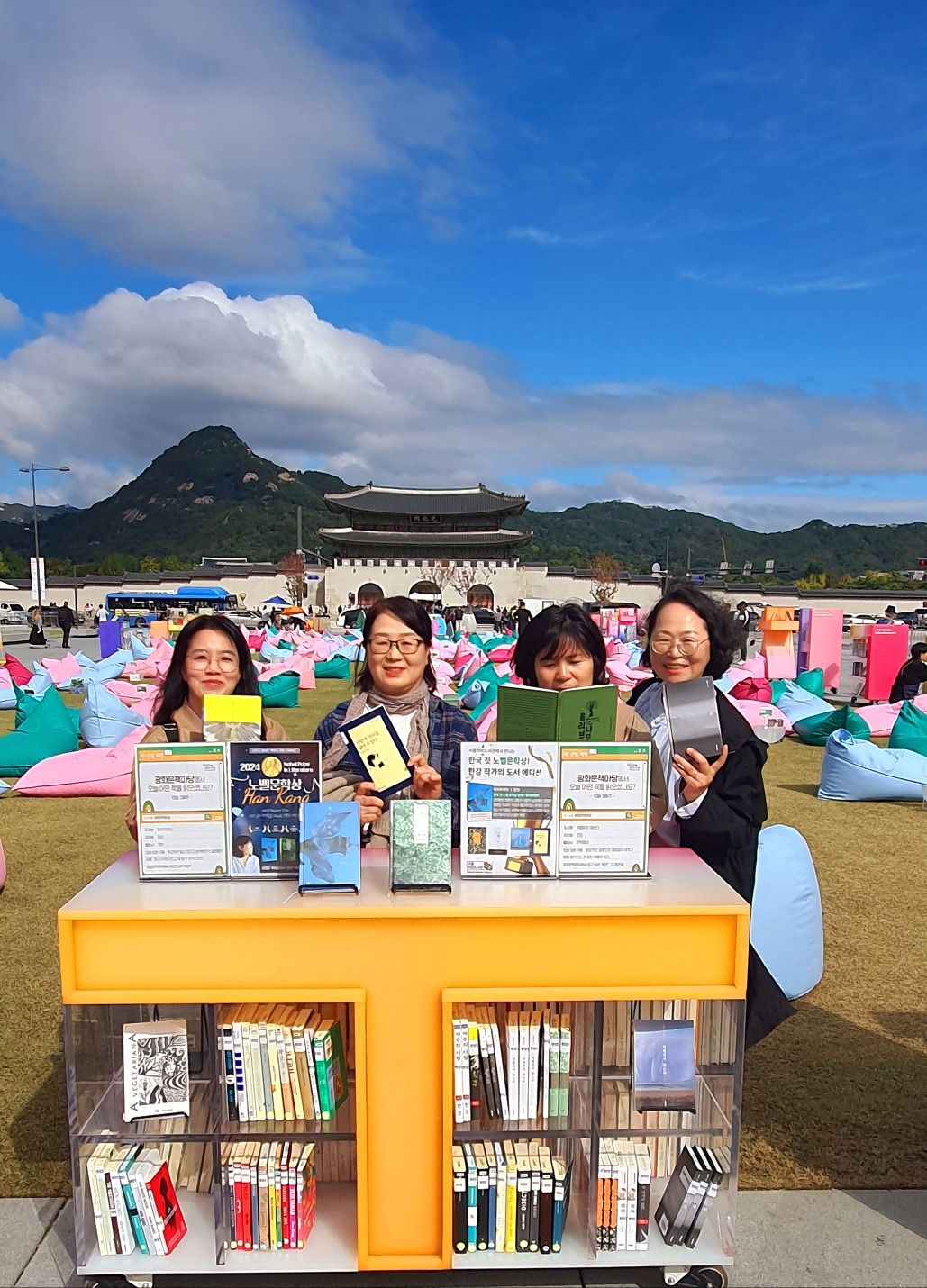 대신에 한강작가의 물결로 포문을 연 책마당에서 푸른 가을하늘과 흰 구름을 지붕삼아, 책 한권 씩 읽는 벗들의 찍사노릇도 하고요, 청계천 맑은 냇가 도서관에서는 곧 출간될 책의 작가를 만나서 인쇄할 책의 마지막 수정부분을 확인하는 업무수행도 했지요. 어딜가나 일거 00득은 해야 직성이 풀리는 일 중독자...이지만 이곳저곳 서울 대로를 활보하며 2만여보를 걷는 강행군이었음에도 참 행복했습니다.