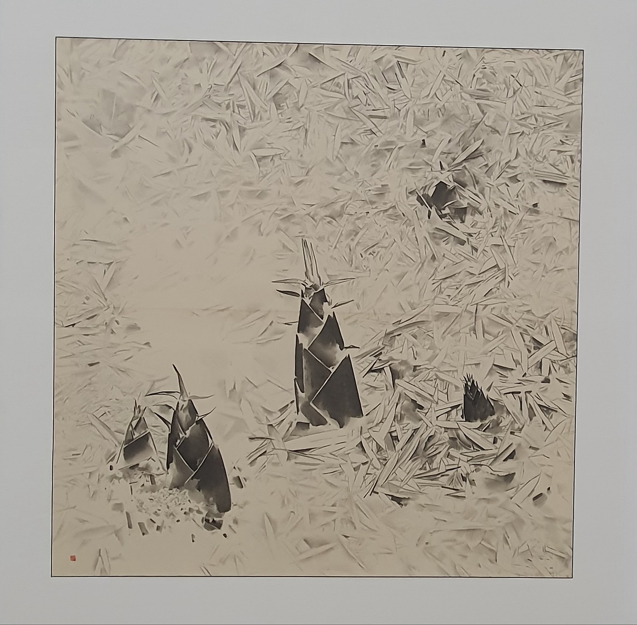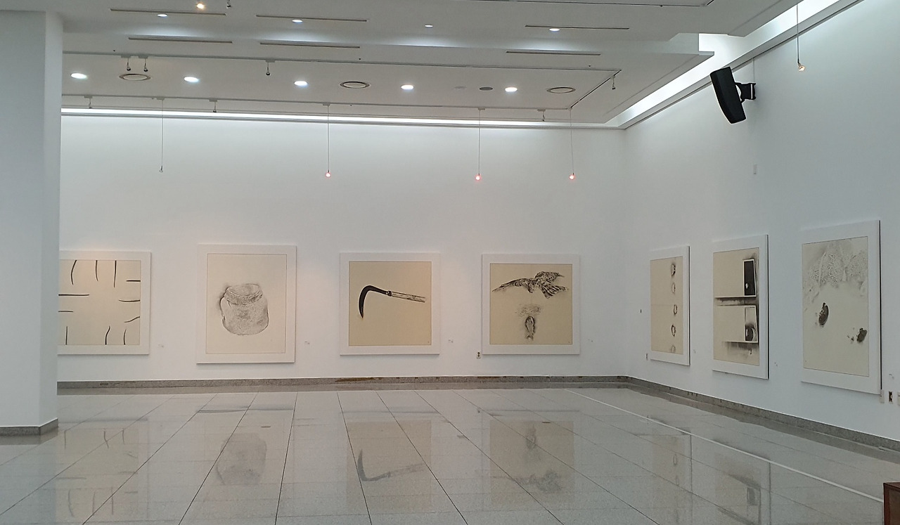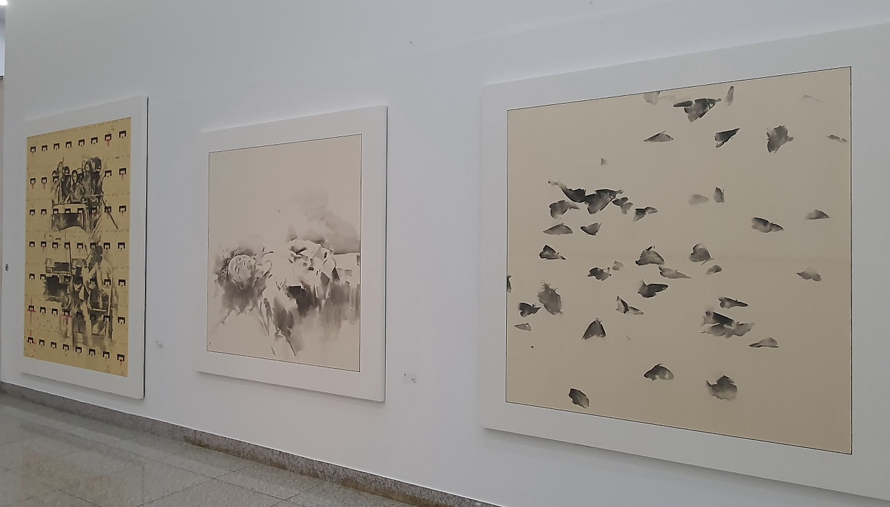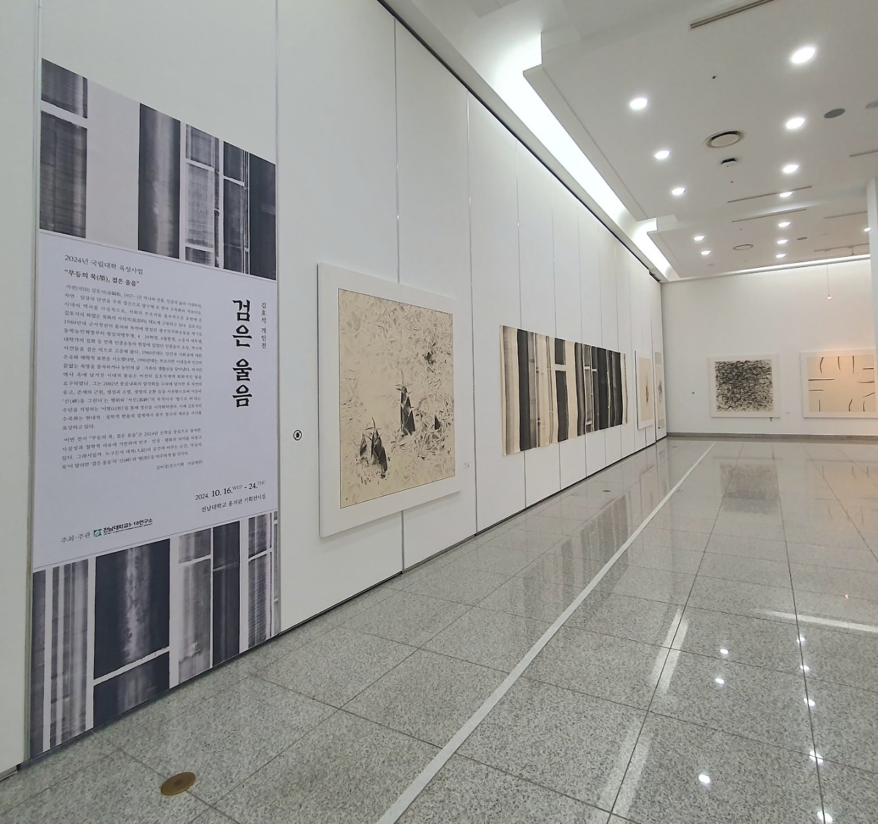 요즘 한강작가 물결이 광주 5.18역사로까지 밀려와 곳곳에 걸린 플래카드 등만 보아도 광주사람들의 기쁨을 느낄 수 있었습니다. 이번 김호석 화백의 전시회 주제는 ’무등의 묵, 검은 울음‘이라고 하고요, 2024년 신작을 중심으로 민주, 민권, 평화의 진정한 의미를 되물음 해보자 라는 주제가 있었습니다.