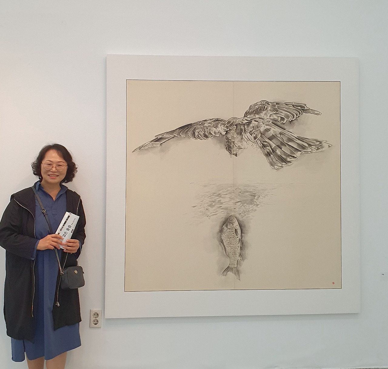 특히 한강작가의 소설 <소년이 온다>의 실제 주인공이었던 고 문재학 학생을 그린 그림과 함께 5.18의 비극을 철저한 사실성과 철학적 비유을 통한 작품들을 선보이고 있다는 해설지를 읽었습니다. 제가 비록 그림을 볼 줄도 모르고 그릴 줄은 더욱 못하지만, 그림에서 전해져오는 사실적 감정만은 느낄 수 있겠다 믿었습니다. 또 한강작가의 글과 김호석 화백 그림과의 공통성을 직접 체험하고 싶어서 일부러 전시장에 갔었습니다.