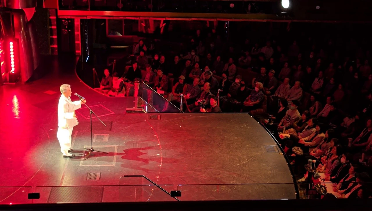 저녁에는 선상의 하이라이트 공연으로, 김병오 테너와 장사익 가수님의 노래와 다양한 인생이야기를 들었는데요, 특히 장사익가수는 우리나라 시인들의 시로서 직접 창작한 노래를 많이 들려주었답니다. 특별히 시인들에게 감사의 인사를 드리더군요. 첫 번째 노래에서 '사람이 사람을 만나 서로 좋아하면'이라는 노랫말을 듣는 순간 저도 모르게 마종기의 <우화의 강>이라고 잘난 체를 했답니다.