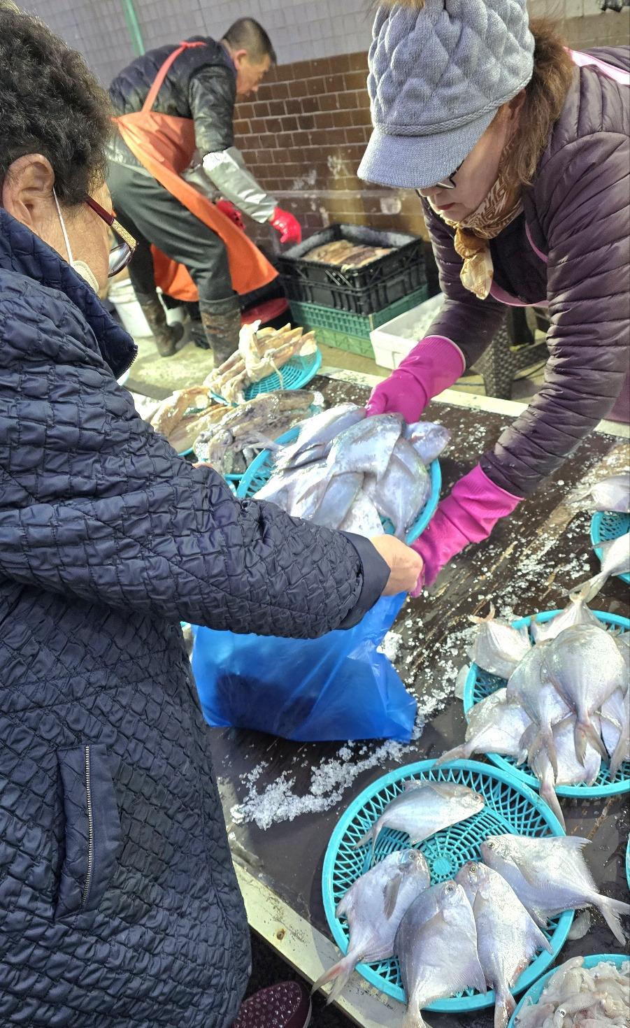 “어메, 한 바구리 더 사면 두 마리 올려드릴께, 조금 더 쓰시오.”