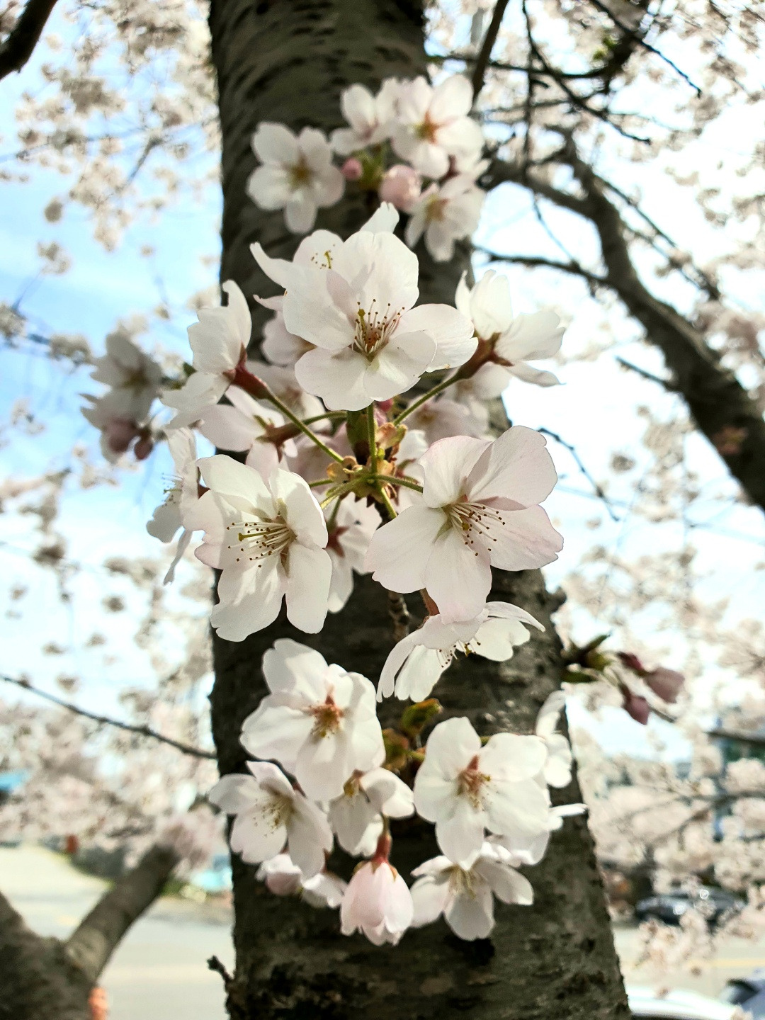 이 비타민을 당연히 혼자 먹을 수 없지. 엄마에게도 드려야지 하는 맘으로 벚꽃나무 가까이에 차를 댔다.