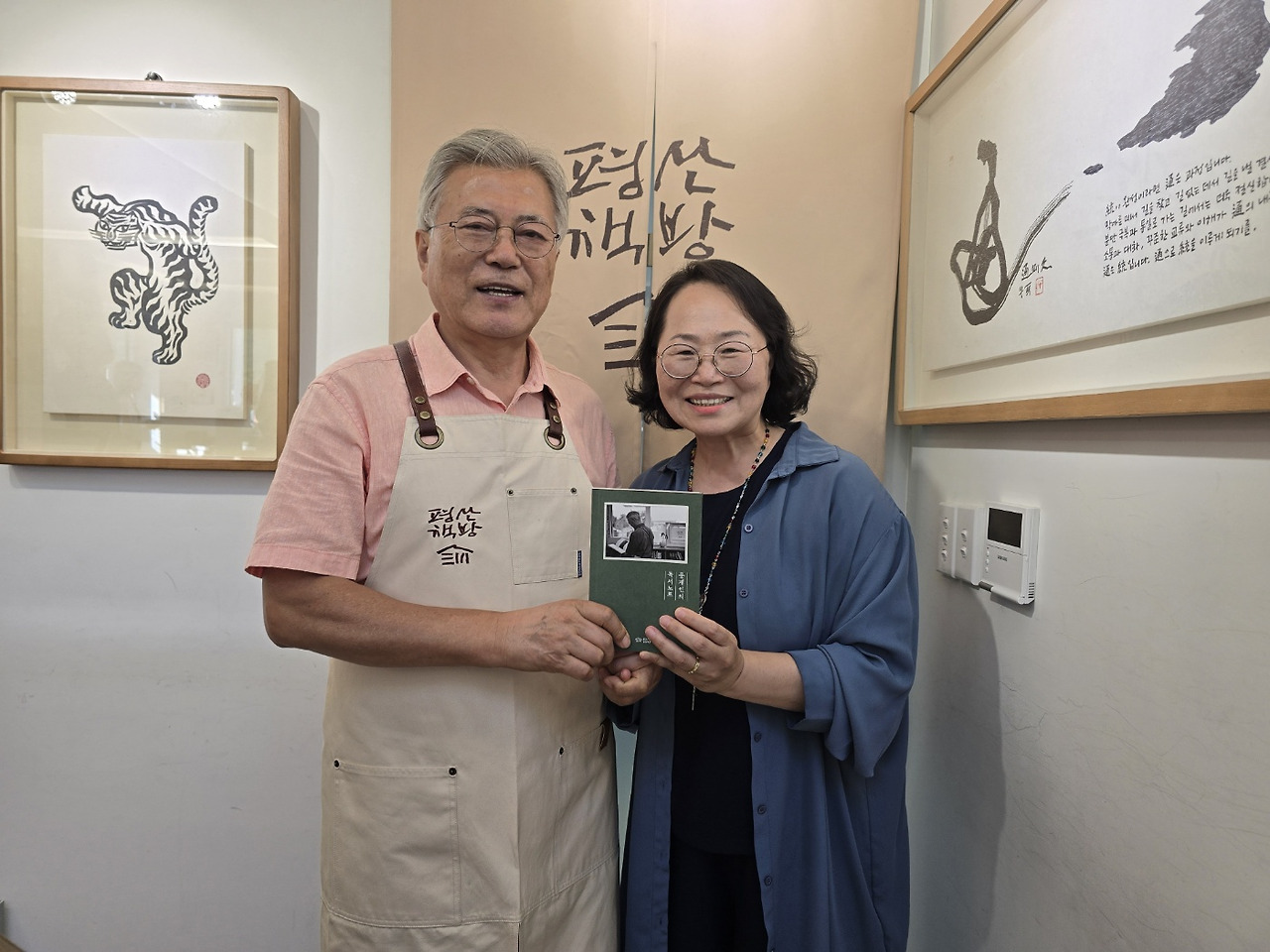 이웃하고 있는 평산책방, 문대통령 사저가 바로 위에 있었고요. 저희도 많은 방문객들과 함께 대통령을 기다렸네요. 제가 어디가서 대통령하고 사진 찍을 기회가 있을까 싶어서, 다소 긴 시간도 즐겁게 수다떨면서요.^^ 함께 간 후배가 준비해 온 떡을 받은 대통령께서 떡 나눔도 하시고, 작년에 제가 출간한 이순화 시인의 시집도 흔쾌히 받아주시며 응대하시고요. 사진 찍으려는 모든 사람들의 손을 먼저 꼭 쥐고 함께 사진찍어 주시는 친절함. 눈물나게 참 고마웠습니다. 대통령 곁에서 책방지기 하시는 박성우시인의 가이드도 감사했어요.