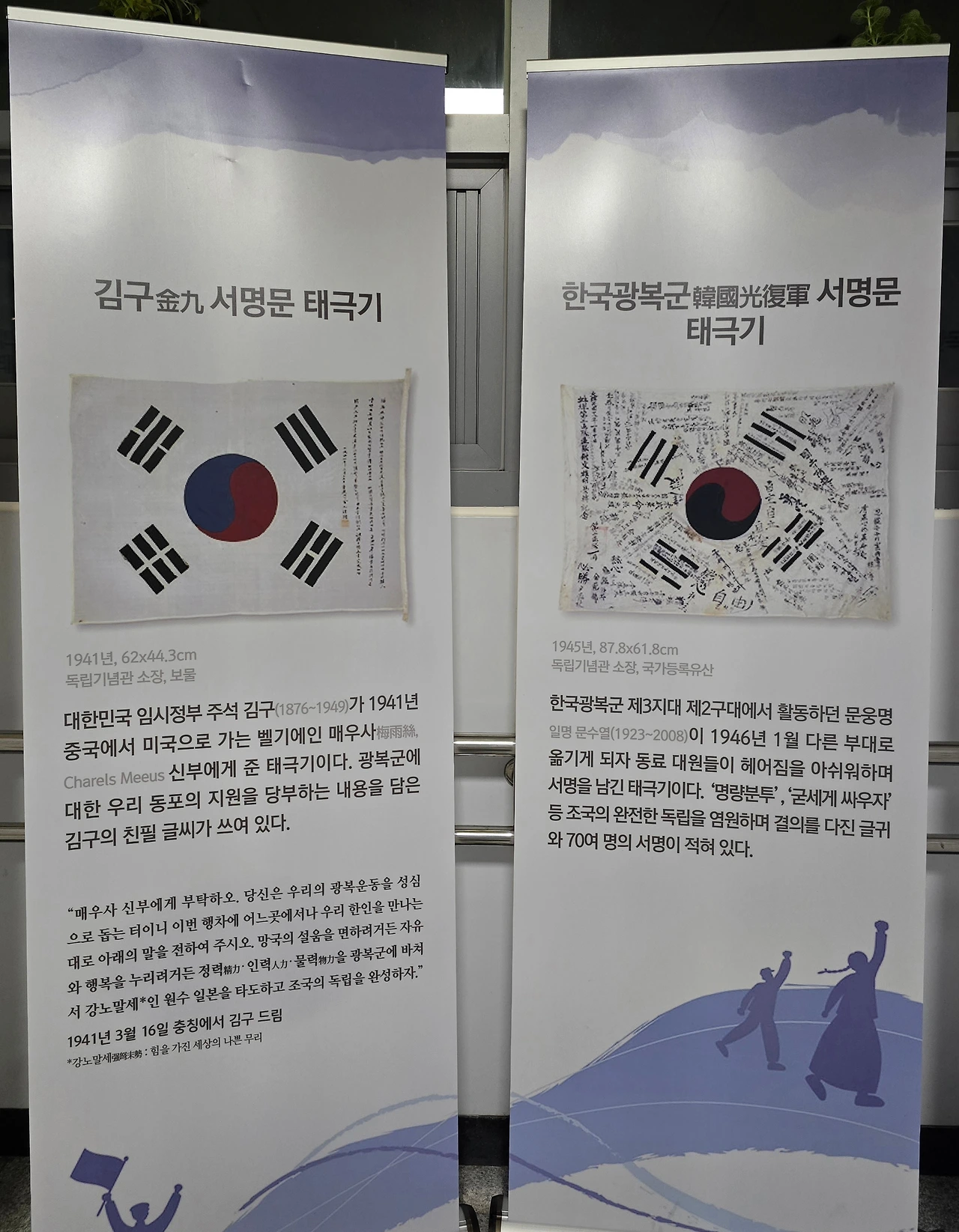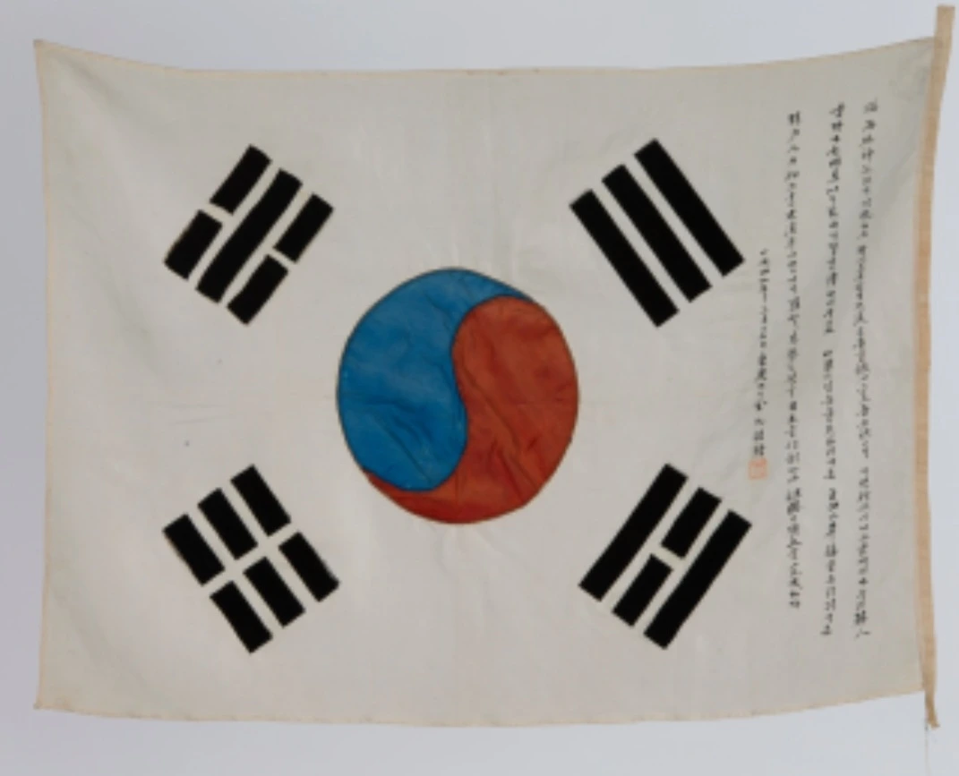 김구선생의 친필이 써있는 태극기