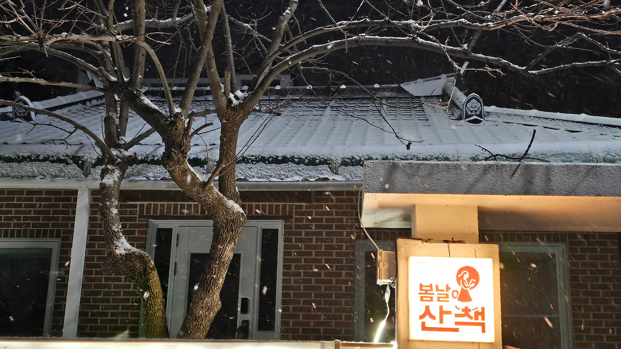 어젯밤 수업을 끝내고, 다시 또 책방에 가서 정리를 하고 나오니 제법 눈이 내리더군요. 새 책방 간판 불빛 위로 떨어지는 눈송이는 땅에 얼씬도 못하고 녹아버리더군요. 체감온도는 얼마나 내려갔는지, 친구가 준 코트가 아니었다면 엄청 서러움이 밀려들었을 거예요. 일을 해도 끝이 없어서요. 자꾸 일 속도는 느려지고 급기야는 ‘이거 잘하고 있는 건지’라는 생각이 불쑥거리고요. 그런데 역설적이게도 하늘에서 내리는 첫눈이 차가워지는 제 마음을 데워주었답니다.