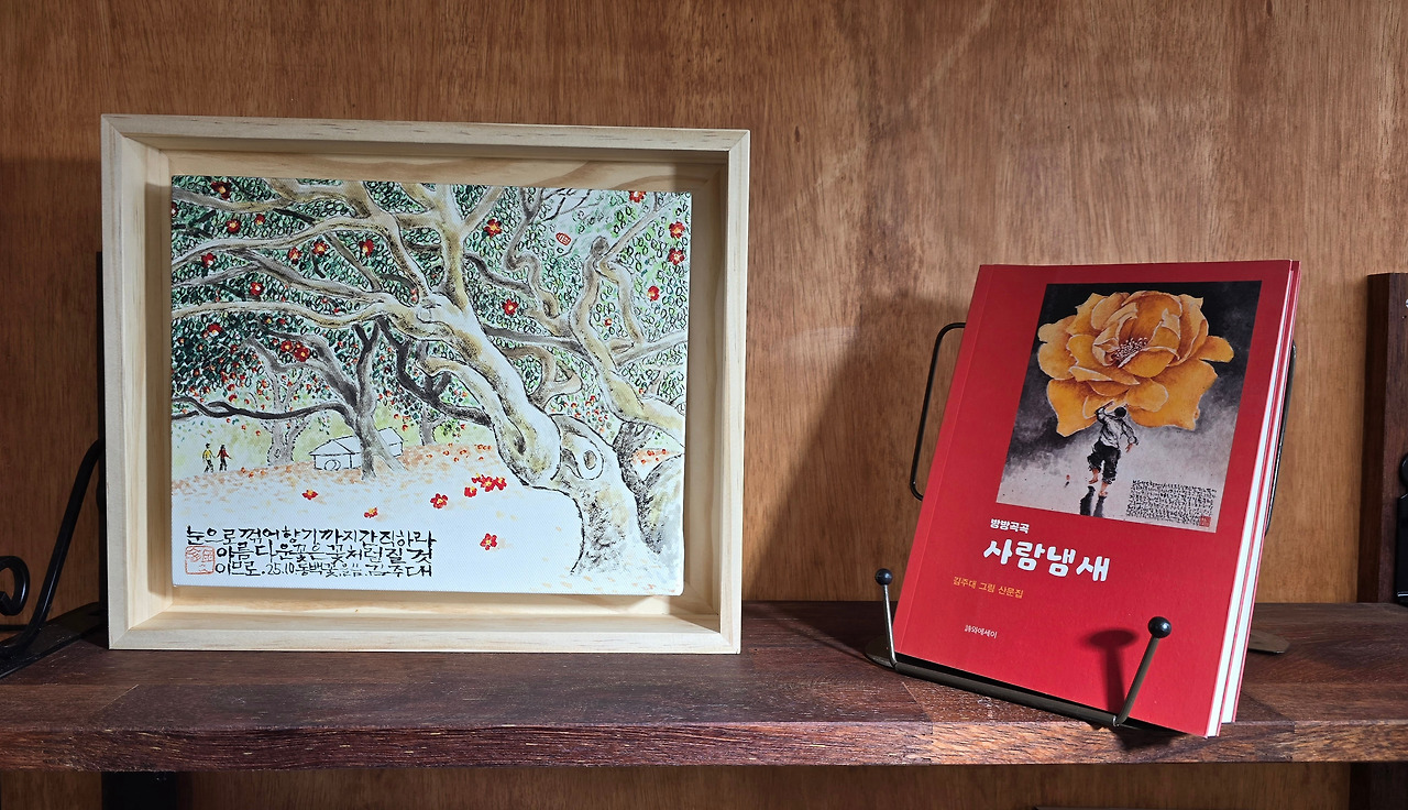 <나루> 회장, 박선희선생님 선물-김주대 시인의 그림 영인본 <동백꽃>