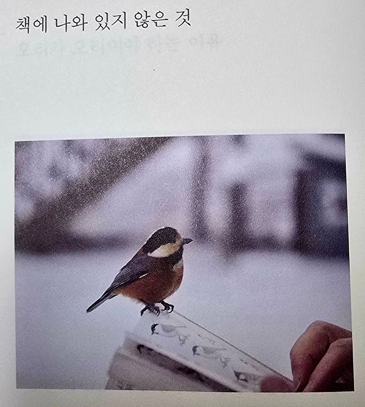 때마침 곤줄박이 한 마리가 책 위에 앉았다