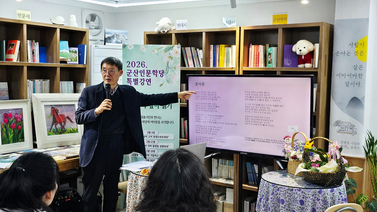 어제 군산인문학당 특별기획강연 ’ 김사인 시인과 함께 하는 우리 시 깊이 읽기‘의 첫 번째 이야기 대상은 시혼, 김소월 시인이었습니다. 우리나라 시인 중에서 김소월 시인을 모르는 사람이 없을 만큼 소월의 시는 대중적으로 알려져 있지요. 심지어 외국인이 치르는 한국인 귀화 필기시험과 한국어 자격시험에 <진달래꽃>의 지은이가 누구냐는 문제가 나올 정도입니다. 김소월을 모르면 한국인이 아니고 한국인이 될 수 없다는 말일 수도 있지요.