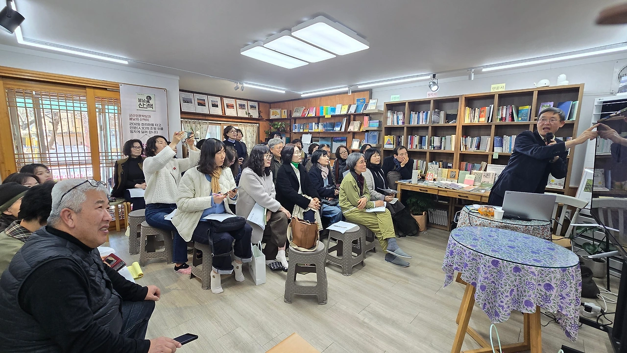 영랑의 첫 번째 시 <끝없는 강물이 흐르네 1930.3>에서부터 마지막 시 <어느 날 어느 때고, 1950.3>까지, 시간의 흐름에 따라 영랑의 주요 시를 따라가면서 공부하는 시간. 청강하는 모든 분들이 얼마나 집중해서 이야기를 듣는지, 김사인 시인의 말씀대로, 적막의 품위로 가득했던 시간이었습니다. 저도 영랑시인에 대하여 새로운 사실들을 들으며, 어떤 시에서는 고요와 사랑이, 어떤 시에서는 울분이, 또 어떤 시에서는 환희가, 또또 어떤 시에서는 절망과 체념 등... 시인의 삶의 색채만큼이나 형용할 수 없는 감정이 오고 갔습니다. 너무 안타깝게 죽음을 맞은 시인의 삶이 ’ 운명이었나 ‘ 싶어서 더욱더 마음 슬펐습니다.