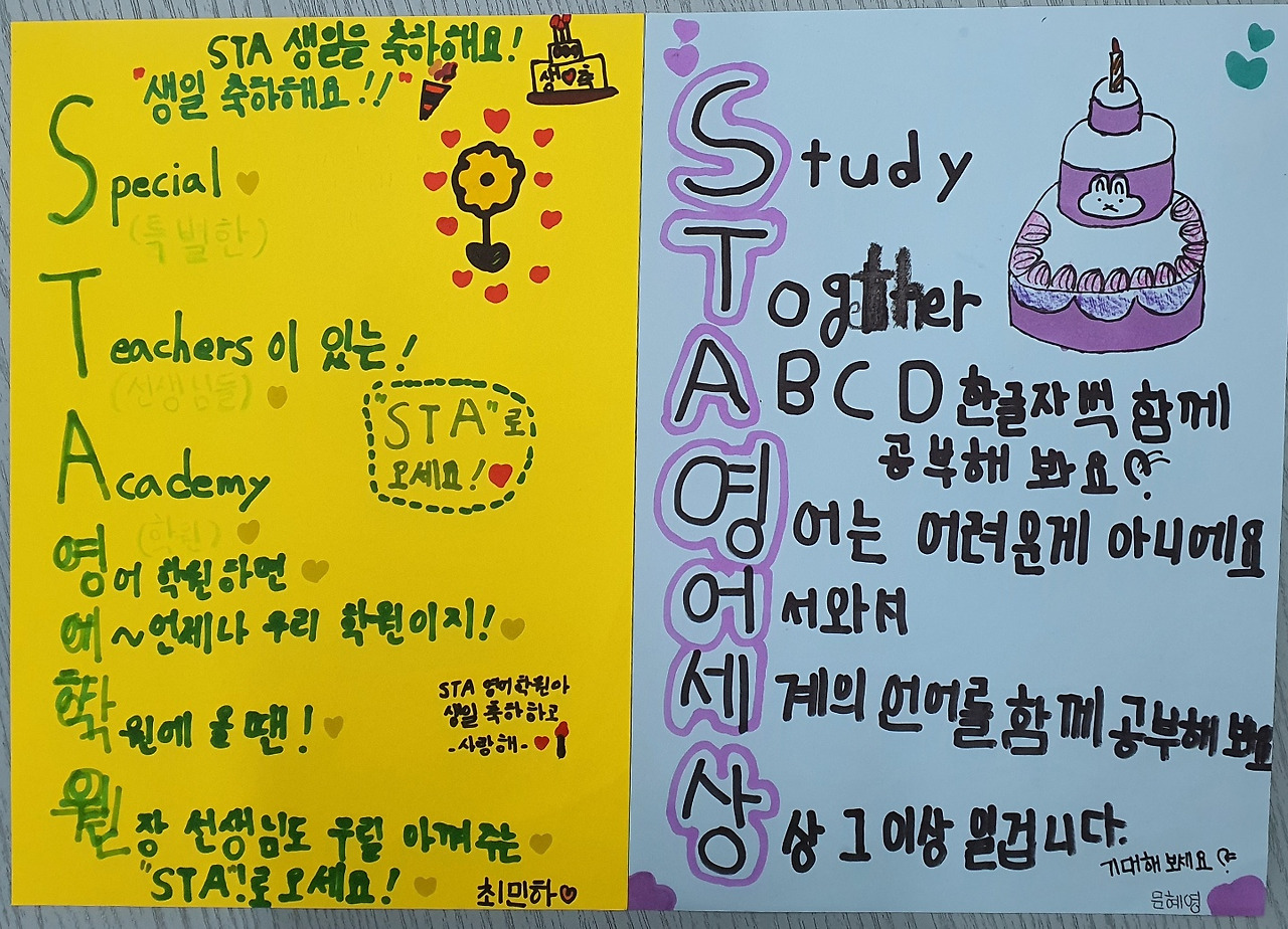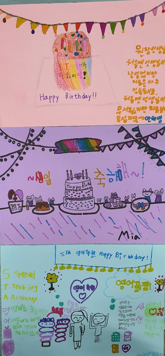 초등 1학년부터 중 1학년까지 행사한 O행시 짓기에서 우수작 20작품을 뽑아서 작은 상금을 주었다. 다른 친구들에게도 간식으로 학원 생일 잔치를 함께 나눴다.