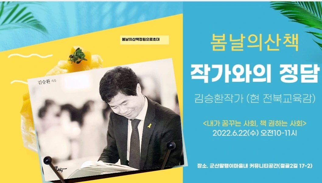 - 인연이라고 하죠. 거부할 수가 없죠. 내 생애 이처럼 아름다운 날’- 가수 이선희의 <인연>노랫말이죠. 제 아이들의 초중고 시절, 학부모 활동을 하면서 맞닿은 작은 인연이 있지요. 오늘 그분을 <지역작가의 정담>마당에 모십니다. 언제나 소박한 모습으로 소리없는 울림으로 오십니다. 김승환작가(현 전북교육감)와 함께 나눌 Book Talk & Poem. 오늘의 시는 마종기시인의 <우화의 강>을 들려드려요. 봄날의 산책 모니카.