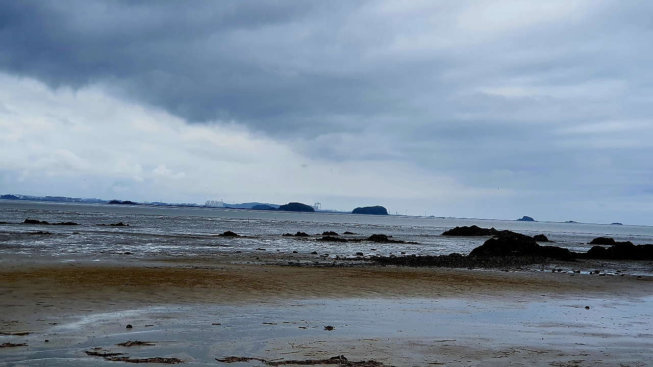 장항 바다 전경- 섬과 갯벌 그리고 푸른회색빛 하늘과 외유내강의 바닷물