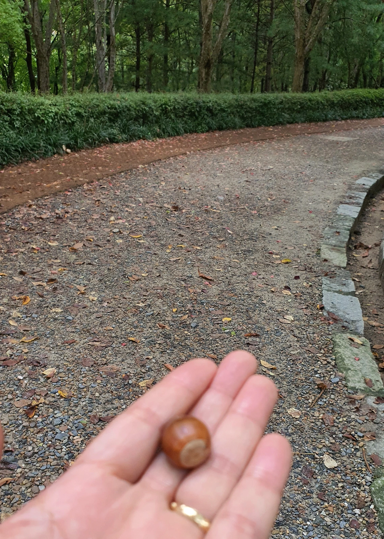 상수리나무 아래를 지나다보니 도토리 몇알이 있더군요. 안도현시인의 동화<관계>의 주인공 도토리와 낙엽이 서로 관계를 맺어 다시 태어나는 도토리의 이야기가 생각났어요. 도토리를 주워 딸에게 보이면서 문득 부모와 자식이 맺는 인연을 생각했어요. 요즘은 제가 아들과 딸에게 큰 위로를 받았답니다. ’엄마의 행복이 첫째야‘ ’엄마가 하고 싶은 것만 해요‘ ’책임감이나 성실, 좀 부족해도 돼요‘ ’우리를 너무 걱정하지마‘ ’좋아하는 글쓰기, 여행, 지금부터라도 엄마 원하는 대로 살아요.‘ 라고 말해줬지요. 아이들을 키울 때 나도 이런 말을 더 많이 들려줄걸. 미안하고 또 미안했지요. 동시에 고맙고 또 고마웠어요. 늘 작은 도토리같아 걱정만 안고 살던 저는 보았답니다. 도토리 속에 있는 또 다른 아름드리 상수리나무를요. 저는 묵묵히 낙엽이 되어 새싹이 움트는 도토리와 관계를 맺고 싶습니다.