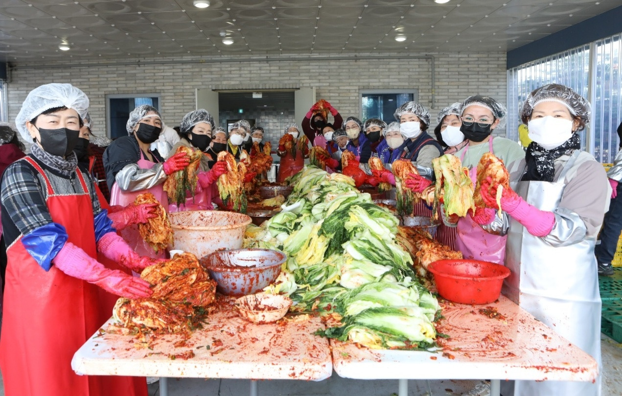 젊은 외국인 여성들이 봉사자 이모님들 사이에서 방긋웃네요. 김장은 우리의 위대한 고유문화.