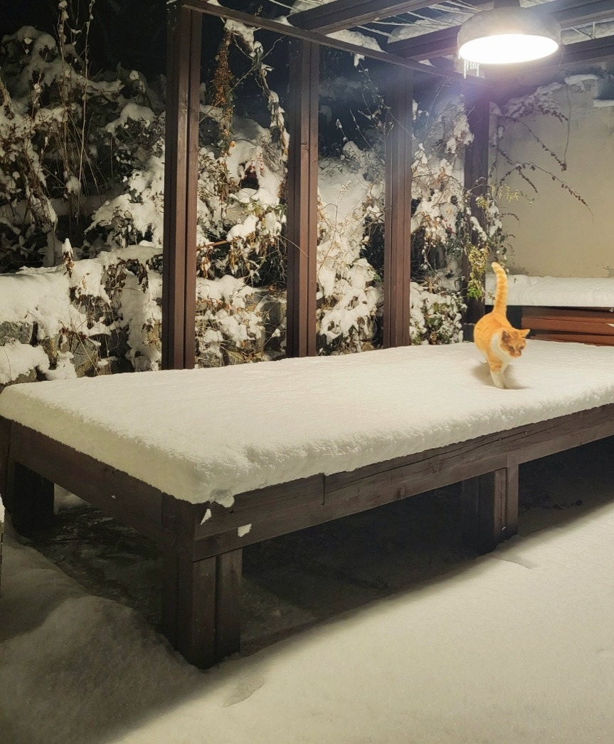 어제 아침 백석의 <나와 나타샤와 흰 당나귀>를 보내서였을까요. 하루종일 푹푹 눈은 내리고 나타샤 대신 모니카는 하늘 향해 흰 눈을 받아먹으며 흰 당나귀 대신 누렁야옹이와 말랭이마을의 깊고 깊은 설경과 한 몸이 되었지요. 소리없이 함박스럽게 내려오는 흰 눈을 보며 어느 영혼이 저 모습으로 왔는가 싶어 뚫어지게 보았답니다. 그 덕분에 시력 나쁜 제 눈(目)속에 맑은 눈(雪)의 영혼이 들어와 어둠 속에서도 눈 덮인 앞산의 모습이 환히 보였어요. 이토록 눈이 무겁게 쌓이는 겨울날이면 아마도 산말랭이 사람들은 이렇게 살았겠구나 싶어 귀를 기울였지요. 찬바람에 떨리던 문풍지 소리를 들으며 한 이불 속에서 서로 엉키던 형제들의 차디찬 발가락들, 쉬이 잠들지 못하며 허공을 채우던 형제들의 수다와 입김이 떠올랐어요. 지인과 마을을 뒤로하며 내려올 때 박노해 시인의 <그 겨울의 시>를 나눴습니다. 읊어지는 시 한 구절로 추위 한 겹을 덮고 새로 만난 인연으로 새날 한 자락을 만든 시간이 고마웠네요. 백석의 시어처럼 푹푹 눈이 내린 어제의 추억을 깊고 깊은 서랍 속에 넣습니다. 언젠가 누군가가 그리울 때 다시 꺼내 보려구요. 오늘도 아름다운 시 한편 들려드립니다. 봄날의 산책 모니카.