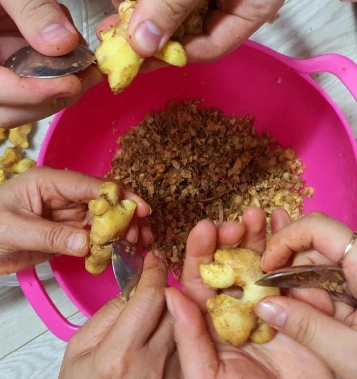 이사 한지 넉 달만에 처음, 가족 넷이 모인 어제 저녁. 사이좋은 아들과 딸의 신세대 얘기를 듣고 있자니 남편은 통닭 한마리 사들고 오고, 눈치빠른 아이들은 얼른 ‘먹고싶었어. 아빠 최고야’라며 야식을 금한 저의 잔소리를 막더군요. 핑계김에 혼자하려던 생강껍질벗기기에 모두 동참하라했지요. 지인이 준 생강은 그 껍질이 얇고, 부드럽고, 향기가 참 좋았습니다. 생강담긴 둥근 그릇 하나를 가운데 두고 숟가락을 들고 생강껍질을 벗겼지요. ‘아~~향기가 달콤해. 생강만 만져도 감기가 얼씬도 못하겠다’며 서로 담소를 나눴네요. 영화 기생충의 한 장면 중 박스접던 일가족같다느니, 집이 좁아지니 얼굴을 가까이 볼 수 있다느니... 수다소리가 반가웠어요. 자식들이 크니 벌써부터 좁은 둥지도 넓어지고 외로움도 커져만 갔는데 오랜만에 사람의 향기로 가득했지요. 달콤한 듯, 앗쌀한 듯한 생강향기가 스며든 손을 잡고 잠을 잤어요. 겨울철 감기예방 면역체를 만들어준 일등공신 가족사랑과 생강. 오늘은 생강을 곱게 갈아서 생강차를 만들거예요. 엄마, 생강을 주신 지인, 저와 가족들 골고루 나눠 먹을께요. 마음만이라도 생강차를 함께 드시고 감기 물리치시게요.