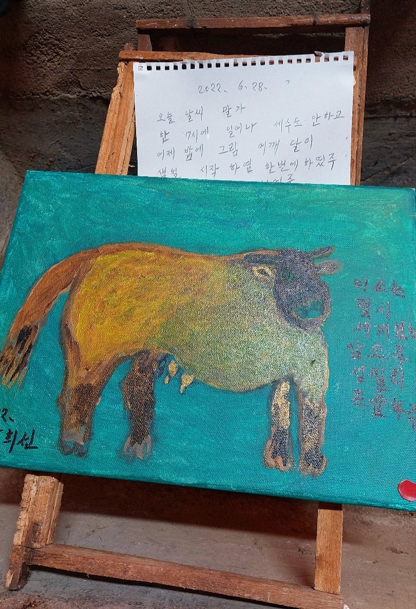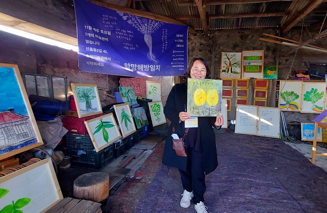 삼다도(三多島)와 삼무도(三無島)로 유명한 제주도로 오면서 두 가지를 떠올렸죠. 가수 혜은이의 노래 ‘감수광’과 추사 김정희의 그림 ‘세한도’입니다. 도착하자마자 열쇠 없는 대문과 삼다도 명물을 한꺼번에 만나면서 오늘 일정에 있을 김정희 추사관 방문을 기대했어요. 사실 제주 선흘리 할머니들의 그림 '할망해방일지’의 작품들을 인터넷으로 볼 때만 해도 ‘대단하시다, 멋지다’ 정도의 수식어로 족했습니다. 그런데 이게 왠일입니까. 추사 김정희의 제주도 유배생활 9년. 추사만의 독특한 서체가 완성되고 세한도의 비밀을 담고 있는 제주도라 해도 그가 먼 훗날 후손들의 글과 그림으로 다시 살아날거라고 생각하지 못했답니다. 선흘리 할머니(80-90대)들은 평생 처음으로 펜을 잡고 글씨와 그림을 배웠다는데, 제 눈에는 모두 추사를 능가하는 예인 같았습니다. 소를 키우던 외양간은 미술관이 되어 할머니들의 작품이 전시되어 있었구요, 매일 쓰는 농사도구는 작품전시의 보조창이 되었답니다. 이제는 제주의 관광일번지를 물으신다면 선흘리 할머니들의 생거미술관을 꼭 방문해보시길 강추합니다. 오늘은 정일근 시인의 <유배지에서 보내는 김정희의 편지>에 담아 보내드립니다. 봄날의 산책 모니카.