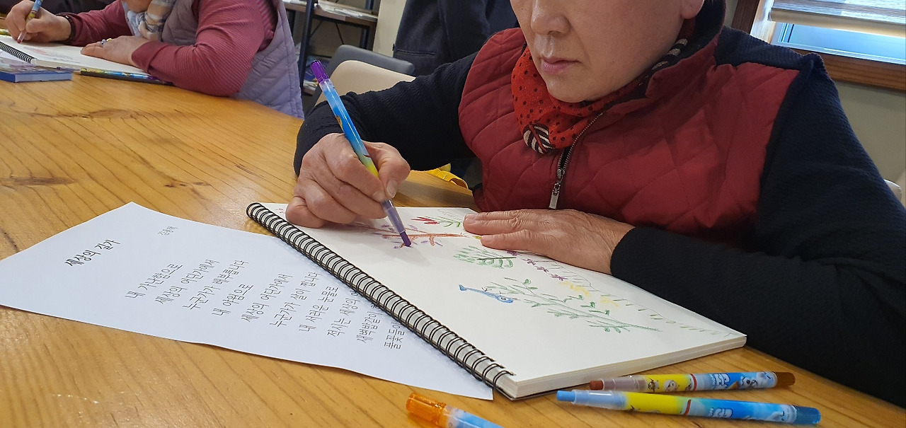 함께 사는 세상이라지만 함께 무언가를 이루는 공공(共功)의 모자이크를 완성하는 일은 참으로 어려워요. 사람들의 마음 줄기가 늘 변하기 때문이겠지요. 그러나 역설적이게도 참아낸다면 더 새롭고 더 창의적인 또 다른 변화의 열매가 나오기도 해요. 어제는 공공(公共)의 목적으로 시도되는 두 곳의 문화현장을 만났어요. 하나는 책방과 말랭이마을 어른들이 함께 하는 성인문해교실 ‘동네글방’ 오픈 날. 10명의 마을 어른들이 기초한글의 읽고 쓰는 능력을 배워요. 문해교육 교과서, 시집, 그림책 등의 자료로 약 6개월정도 공부하지요. 글방으로 출석한 마을 학생들?의 설레임을 상상해보세요. 왼쪽 가슴에 무명손수건을 차고 학교 운동장에 들어서던 제 모습이 떠올랐어요. 어린 눈에 엄청나게 커보였던 학교운동장, 이제는 작아 보이지요. 배움으로 채워지면 큰 세상이 두렵지 않은 것과 같아요. 아마 말랭이 마을 어른들도 그렇게 변화할 거예요. 또 한 곳은 군산 대야면, 오일장에 설치될 상설미술공간이예요. 전문가만 그리고 전시하는 미술공간이 아니라 비전문가의 발길이 쉬운 곳으로 탄생해요. 말랭이 동네글방 얘기는 제가 진행하니 종종 말씀드리구요, 미술공간 얘기는 발품 팔아 재미난 얘기 들려 드릴께요. 두 곳의 공통점은 군산문화도시센터가 ‘문화‘라는 이름표를 달고 시민이 가진 고유의 가치를 표현해보자고 시작하는 거예요. 결과에 매달리지 않고 변화의 과정을 바라보고 즐기면서요. 그러다보면 분명 혼자서는 어려운, 함께 해서 아름다운 지역문화의 모습이 나오지 않을까요.