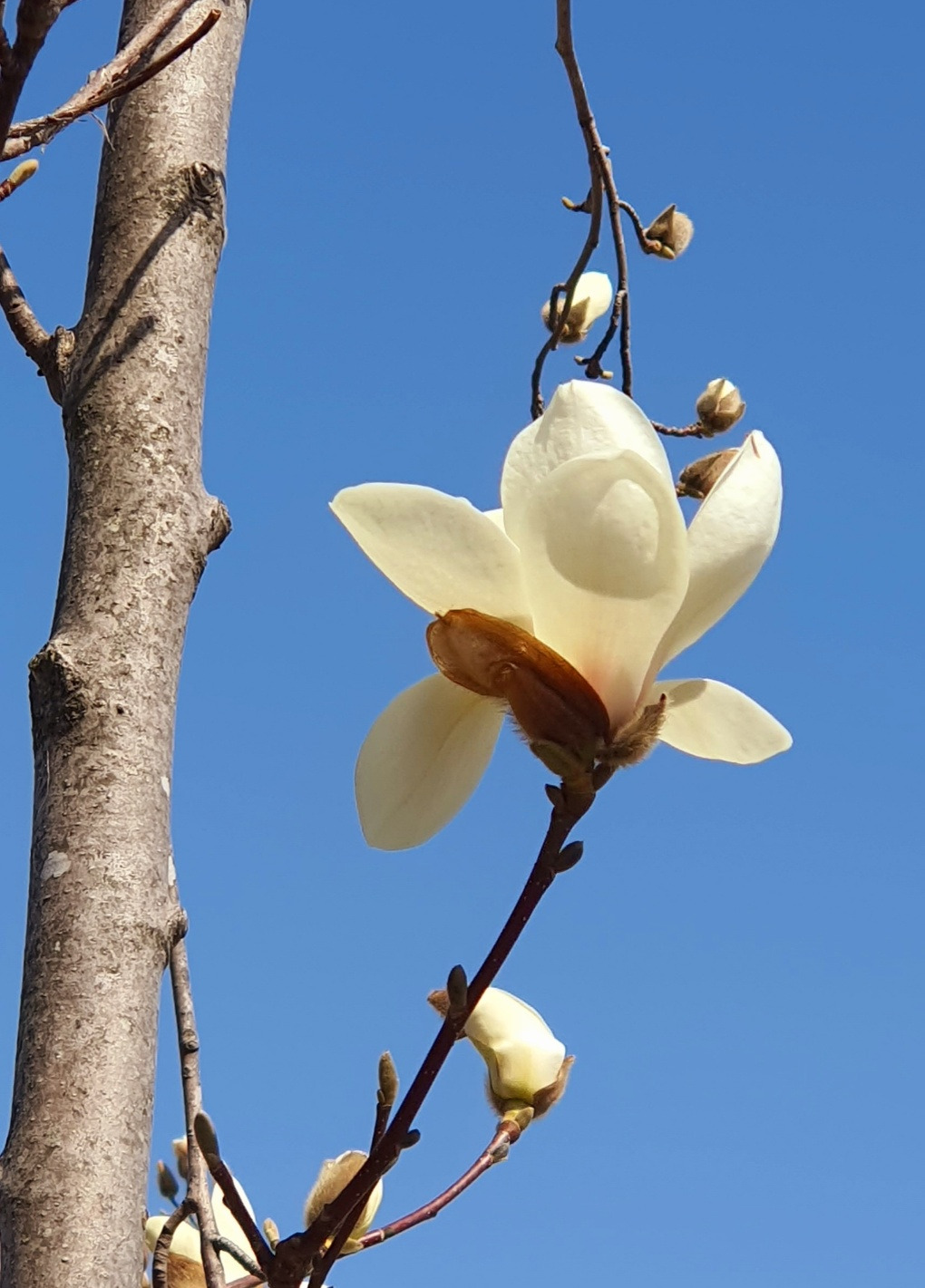 올해 말랭이마을 골목잔치 첫 행사로 마음이 분주하네요. 다른 작가는 한가지 활동만 하는데, 저는 ‘왜 이리 일을 벌이냐’고 걱정을 안길만큼 무려 세 가지를 진행합니다. 시쳇말로 ‘내가 미쳤지. 누가 시키는 것도 아닌데 왜 이럴까나 ’ 싶은 맘도 있답니다.^^ 그런데요, 그냥 함께 하는 활동들이 재미있어서 기획하고 움직이는 것 뿐이예요. 병아리보다 못한 출판사를 믿고 책을 출간한 ‘저의 1호 에세이집’작가와의 정담시간, ‘군산시인들의 따뜻한 시 낭송’시간, 두 번째 책방 ‘다시봄날-어린이그림책공간’을 찾을 어린이가족들이 시와 그림(시화)액자‘를 만들 체험시간 등이 선보일거예요. 말랭이 태생도 아닌데, 군산의 공무원은 더더욱 아닌데, 매일 뭔가를 생각하고 머릿속으로 꾸며봅니다. 이유는 딱 한가지!! 저의 실체가 살고 있는 곳에 남다른 의미를 넣고 싶어서요. 제가 떠나면 누군가가 와서 저보다 더 멋진 주체자로 살며 문화공간을 만들어주겠지 싶어서요. 저는 어디서든 주인으로 살고 싶거든요. ’수처작주(隨處作主) 입처개진(立處皆眞)‘ 오늘도 새겨봅니다. ‘공유하는 주인의식’으로 저를 봅는 지인들에게 늘 감사합니다. 구름은 바람 없이 움직일 수 없고 사람은 사랑없이 움직일 수 없다고 하잖아요. 어제 산책길에 만난 백목련(2일 전엔 분명 입 꼭 다물었었는데요)의 환한 웃음을 보며 사진으로나마 이 향기를 함께 나눠야지 생각했어요.