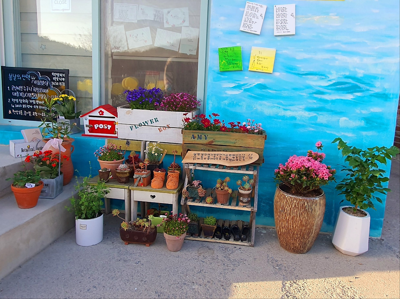 요즘은 대야 5일장을 종종 구경갑니다. 겨울을 이겨낸 책방의 식물들이 새 짝을 기다려서요. 하긴 산과 들, 길마다 피어나는 봄꽃들이 만발하니 책방의 작은꽃 몇 송이들만으로 향기를 부를 수는 없겠지요. 향기가 많아야 책방손님들이 많아질 것을 이 친구들도 아나봐요. 토요일 행사로 몸살나나 싶었는데, 아니 웬걸, 일요일 새벽기운에 절로 눈이 떠졌답니다. 아침미사에서 신부님의 강론 중 ‘진정한 부활은 죽음이후의 약속이 아니라 바로 지금 매일 부활을 할 수 있다’고 말씀하셨죠. 저는 그 의미를 알아듣고, 바로 부활을 실천할 수 있는 방법으로 꽃을 사러 갔어요. 책방 꽃을 일일히 챙겨주는 친구를 마치 엄마닭 따라가는 병아리마냥 뒤쫒아가며 꽃도 사고 시장 구석구석 구경하는 재미에 오천보는 걸었답니다. 주머니 속에는 토요일에 책 몇권 팔았던 돈이 있었는데요, 어찌어찌 하다보니 시장에서 돌고도는 돈의 속성을 맛보았네요. 책방으로 돌아와 화분에 꽃 포토를 옮겨심는 친구의 모습을 사진에 담으며 입으로만 일을 하는 저는 하늘과 바람만 즐겼구요. 시를 쓰는 후배도 찾아와 두 일꾼 덕분에 책방이 환해졌습니다. 요즘 종종 듣는 가요 중 최성수씨의 <목련꽃 질때면>이 있는데요, 만발하는 목련과 개나리가 주인공인 노래가사가 좋아서요. 책방계단 돌사이로 피어난 제비꽃. 1년만에 만나 안부를 주고 받는 기쁨으로 월요일을 맞아요. 같은 일상의 흔한 모습일지라도 얼마든지 바꿀수 있어요. 시간의 길이, 공간의 너비를 맘에 따라 스스로 바꿀 수 있으니까요. ‘언니는 언제가 힘들어요?’라는 후배의 질문에, ‘언제? 글쎄. 힘들지 않아. 매일 새로운 시간이니까.’라고 답했어요. 우리 모두 재밌는 월요일 만들어봐요.
