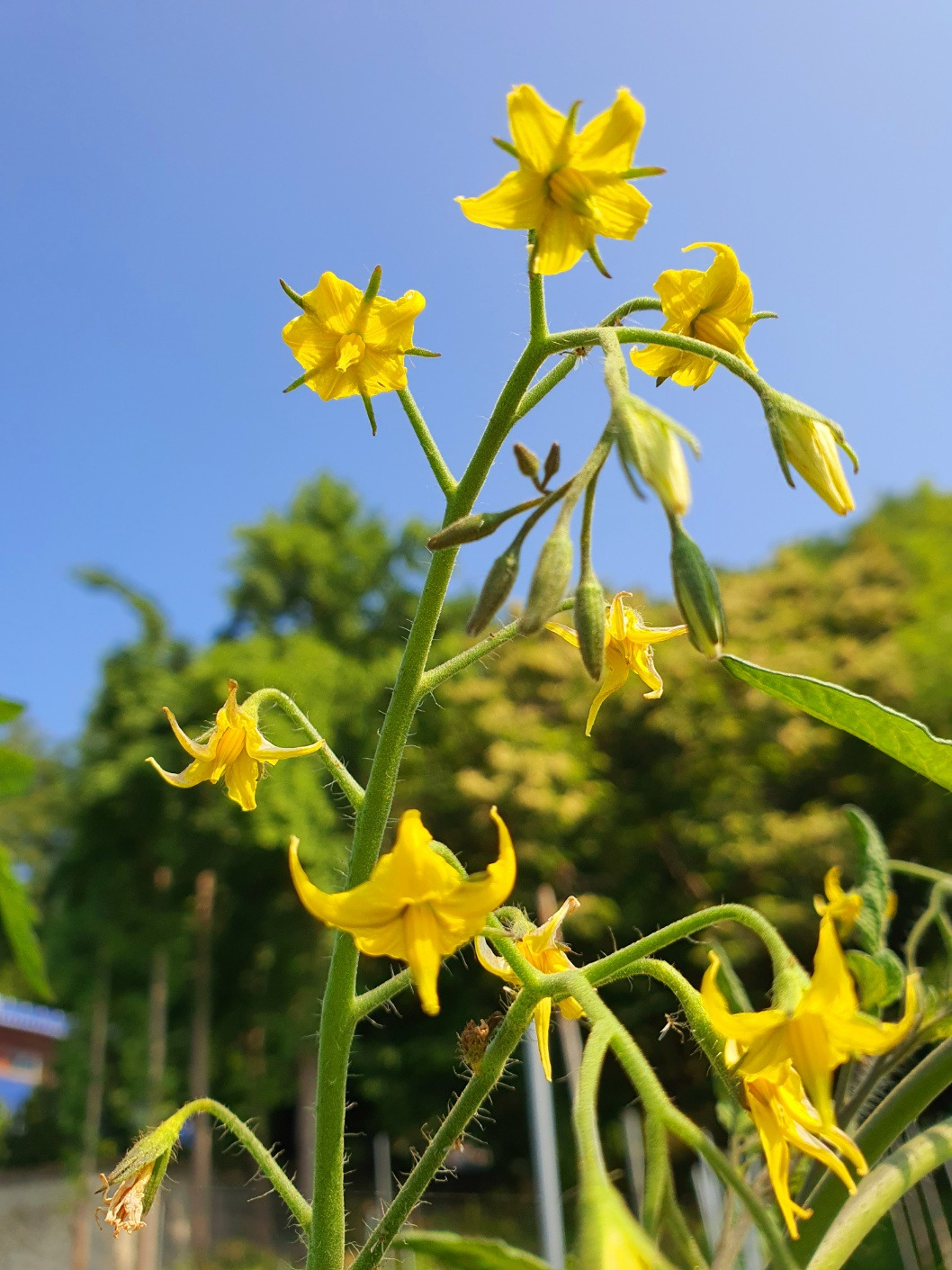 작은 텃밭에 가장 큰 기쁨을 안겨주는 감자. 올해도 얼마나 나올까를 생각하며 밭을 찾습니다. 텃밭농부 6년차, 감자처럼 효자 작물이 없답니다. 이리저리 흰 나비들이 감자꽃 위에서 쪽쪽거리며 나풀거리는데, 꽃잎따기가 미안하더군요. 감자알 조금 더 큰 거 나와달라고 꽃잎을 따야하나 잠깐 고민했습니다. 감자씨 심을 때는 하지감자라 생각하며 심었는데, 정작 하지때 감자수확은 힘들 것 같구요. 그래도 알알이 줄지어 나오기만 한다면 얼마나 좋겠습니까. 감자꽃, 오이꽃, 토마토꽃들에게 눈 맞춤하고 하늘이 낮다 커가는 옥수수 대, 땅이 좁다 퍼져가는 호박잎줄기 따라 저도 전신운동한번 하고 나니 땀이 범벅. 그래도 참 마음이 행복했습니다. 이런 기쁨이 참 행복 아닐까요. 오늘은 책방에 지인들이 온다해서, 어제 따온 오이와 상추로 삼겹살 점심을 준비합니다. 주말이면 말랭이 마을에 ‘어떤 손님이 와서 책을 고를까’를 생각해야 책방지기의 체면이 설 텐데, 저는 오로지 ‘누구랑 맛난 얘기를 할까’에만 관심이 있네요. 신기한 건 ‘누구’를 생각하는 제 맘이 전달되는지 그런 날은 책도 꼭 팔린답니다. 아마 오늘도 그런 일이 있을 것 같은 예감!! 중요한 건 친구들을 위해 맛난 점심을 준비해야죠. 오늘 또 하나 홍보하고 싶은 일, 군산문인협회에서 시극을 하네요. 시를 극으로 연출한 작품이라 해서 저도 구경 가볼까 해요. 무대에 서는 지인들이 많아서 그들의 공연에 축하의 박수라도 보내고 싶구요. 책방지기는 저절로 문화의 씨앗지기가 되나봅니다. 시간이 되는 대로 지역 문화공연을 널리 알리고 싶은 마음이 장착되어 보초를 서는 저를 보니까요. 거리낌 없이 하늘 향해 땅을 향해 퍼져나가는 제 텃밭 작물들처럼 당신의 마음 밭에 영글어질 토요일 열매를 그려봅니다. 오늘도 오로지 좋은 일 즐거운 일만 가득하소서.