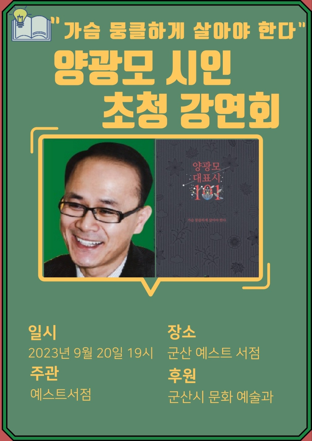 ‘귀뚜라미 소리는 왜 귀뚤 귀뚤로 안들릴까요.’라고 물었더니 ‘귀를 뚫고 애절함이 파고 든다는 뜻이리라’라고 대답해주는 지인에게 ‘시인이시군요’라고 전했습니다. 시를 노래하는 모습이 우리 민족 고유의 유전자라네요. 그럴듯하지요. 방송에서 발표할 시를 쓴 마을 어른들의 낭독연습을 보면서 벌써부터 떨리는 목소리마저도 배경음악처럼 들린다고 하며 웃었습니다. 당신들의 마을을 잘 보이고 싶어서 노력하는 모든 행위에 저도 역시 도울 일을 찾아봅니다. 말랭이 이야기마당에 그들의 사진과 글을 다시 설치하고, 마을 곳곳을 영상으로 찍어 전달하구요. 학원생부모이자 지인인 어떤 분께서는 ‘아이고 이러니 학원생부모들이 걱정하지. 자기 자식 소홀히 가르칠까봐...’라며 농담반 진담반의 말씀을 하시더군요. "사실 제게도 가장 중요한 일은 먹고 사는 기초생활토대를 튼튼히 하는 일이죠. 그러니 글쓰고 책방운영하는 일보다 최우선에는 학원생 만나는 일이니 걱정마세요. 최선을 다하고 있습니다" 라고 말했습니다. 그런데 오늘도 학원 밖에서 행사 하나가 있군요. 올해 우연히 만난 ‘시인 양광모’씨를 특강에 초대했습니다. 부드럽고 여성친화적인 필체의 시를 쓰는 시인으로 독자층이 두텁습니다. 시낭송을 하는 지인들이 양시인의 시를 낭송도 해주시고요. 한 주간의 고비를 넘어가는 수요일 저녁이 시를 노래하고픈 사람들의 목소리로 채워질 것입니다. 제 책방은 너무 작아서 예스트서점을 빌려 행사하니, 많이 놀러오시면 좋겠습니다. 시인의 어느 시가 귀를 뚫고 애절하게 당신의 가슴을 파고들지도 모르니까요. 양광모시인의 <시인의 기도>입니다. 봄날의 산책 모니카.
