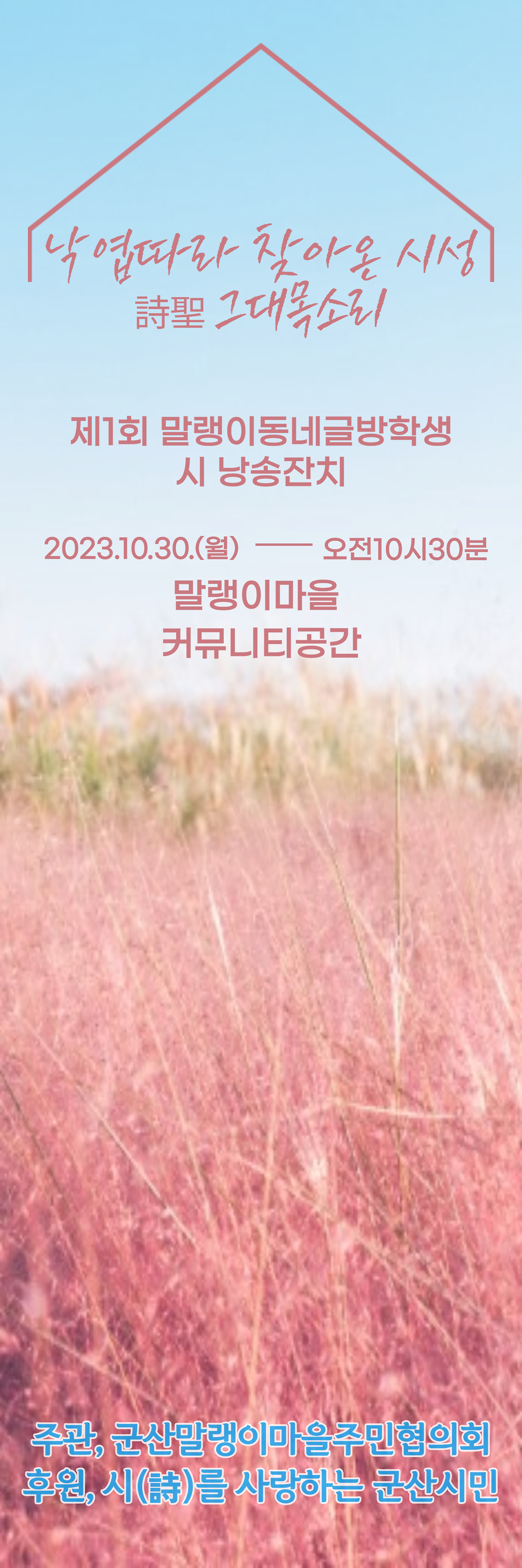 ‘학이시습지 불역열호아(學而時習之不亦說乎兒)`라! 올해 가장 정성을 들였던 저의 시간, ’말랭이 동네글방 선생‘으로서 자랑하고 싶은 맘이 계속 머물고 있었을까요. 아니면 ’일벌‘유전자가 제 몸속에 있는지도 모르죠. 지난 8개월 동안 마을 어른들과 만나면서 글과 시로서 만든 ’인연의 그물‘을 더욱더 짱짱하게 당기고 싶어서 오늘의 행사를 합니다. 무엇을 해도 돈이 드는 것이 세상이치... 저의 맘을 알고 계시는 많은 분들이 후원금을 보내주셔서 행사준비를 잘했습니다. 함께 드실 떡, 축하꽃, 마실 차, 시낭송 우수자를 위한 작은 상금, 전체 어른들께 드릴 선물, 그리고 11월에 전시할 자작시화전 플래카드 비용에 이르기까지 알뜰하게 절약하며 잘 치룰 것입니다. 오늘도 제 맘대로 사회 보면서 우리 어머님들의 추억 앨범속에 남겨질 아름다운 시간을 만들어드리고 싶군요. 이틀전 토요일에도 낭송을 위해 얼마나 시 암기를 노력하고 계신 지 중간검사를 했는데요,,, 절반 이상의 분들이 꼼꼼하게 암송하고 계셨지요. 단, 사람들 앞에서 시를 낭송한다는 일은 ’숨 막히게 엄청 떨리는 일‘ 이기에 무조건 ’어머님, 최고‘라고 수백 번 칭찬해드렸습니다. 이 행사를 축하하기 위해 찬조출연하는 시낭송가들, 축하연주자 가야금 양병창님. 모두 고맙습니다. 10월의 마지막 날, 모 가수의 노래를 듣는 대신 우리 마을에 오셔서 글방어머님들이 들려드리는 시 노래, 15편을 들어보세요. 여러분들의 격려와 칭찬의 박수를 기다립니다. 오늘은 시낭송가 채영숙님의 목소리로 들려 올 박기섭시인의 <구절초 시편>과 글방 어머님 대표 자작시 두 편을 함꼐 들려드입니다. 봄날의 산책 모니카.