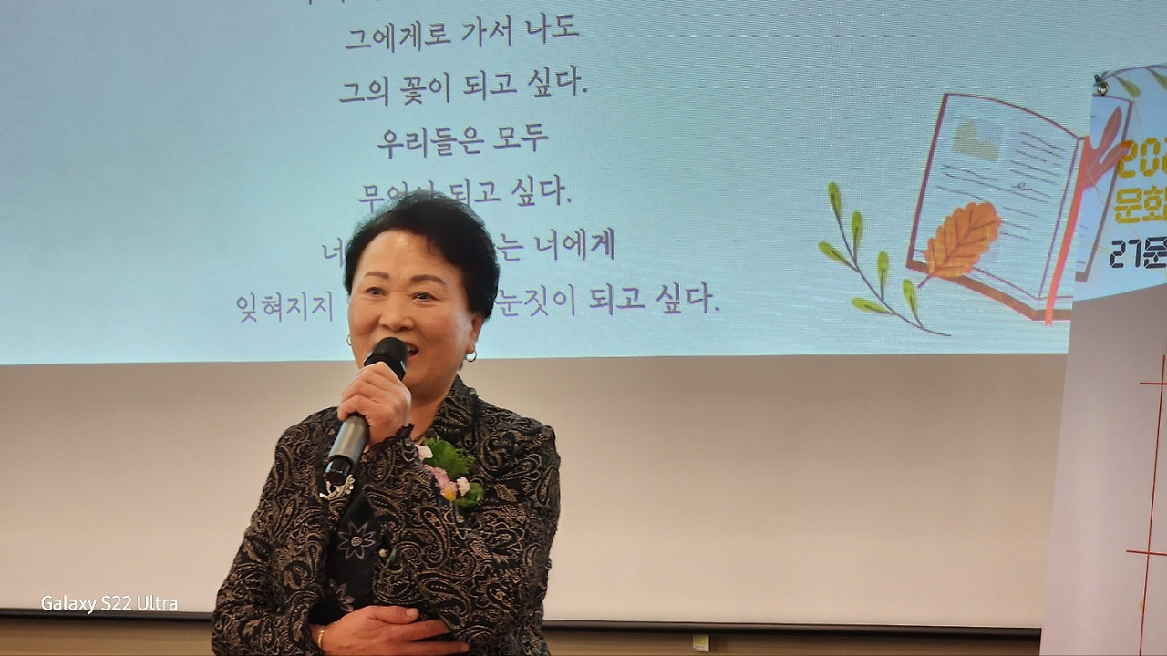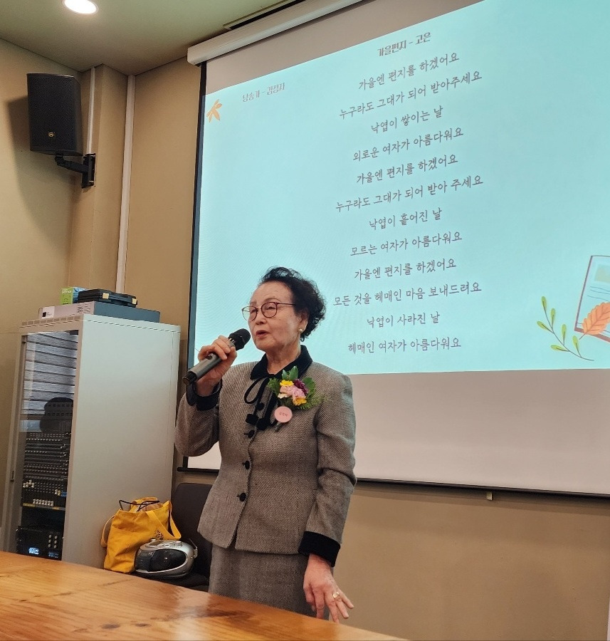 이문재 시인은 <10월> 이라는 시에서 말했어요. -투명해지려면 노랗게 타올라야 한다/(중략)/결코 가볍지 않은 시월 / 노란 은행잎들이 색과 빛을 벗어던진다- 이 구절을 읽으며 '아, 나도 가벼워지고 싶다’ 라고 중얼거린 적이 있지요. 말랭이 동네글방 진행과 결과에 대하여 유별난 저의 책임감은 분명 무거운 과제였나 봅니다. 행사 이후에도 학원에 돌아와 월말과 월초를 위한 운영을 준비해야 했고, 쉬는 시간마다 행사에 함께 수고해준 분들께 사진 및 감사의 인사를 드려야했습니다. 끊임없이 쏟아지는 일을 다 하고 나니 밤 10시. 그제서야 제 가슴 속 노란 은행잎이 투명해지며 색도 빛도 벗어던져 버리더군요. 생전 처음 시낭송무대에 선 어머님들을 위해 많은 분들이 오셔서 축하해주셨습니다. '참, 말랭이 마을 어른들은 복도 많다' 라고 말한 어느 분의 말씀처럼 복이 넘치는 무대였어요. 예쁜 의자 20개와 덜 예쁜 의자 30여 개를 배치하면서 의자들이 손님을 다 맞을 수 있을까를 생각하기도 했지요. 결론은, 외로운 의자는 보이지 않았습니다. 그쯤대면 대중 앞에서 시를 낭송하려니 얼마나 떨렸을까요. 바로 옆에 서 있는 제 가슴에도 자석 달린 진동추가 계속 두두두두... 거렸습니다. 완벽한 암송을 기본으로 시가 전하는 감정에 이입되어 낭송을 하는 어머님들. 정말 잘도 하셨어요. 교학상장(敎學相長)이라. 가르침과 배움이 따로 걸어갈까요? 함께 손잡고 같이 걸어서 서로 성장한 교육의 장. 말랭이 마을 어머님들이 증거입니다. 오늘은 10월의 마지막 날이군요. 오늘도 짧은 여행이 있네요. 함께 공부하는 문우들께서 전주도서관 기행을 하고 싶다고... 저는 여러 번 가보았기에 이번에도 투어가이드 합니다. 갈 때마다 ‘새로운 감성’ 하나만 따와도 좋으니까요. 하루 더 길다고 넓게 제 품을 내어준 10월에게 고맙다고 인사한번, 뽀뽀한번 진하게 해주시면 어떨까요...^^ 오늘은 말랭이 동네글방 시와 그림책 공부를 지도해준 김정희 시인의 시 <어느 해 가을>을 들려드려요. 봄날의 산책 모니카