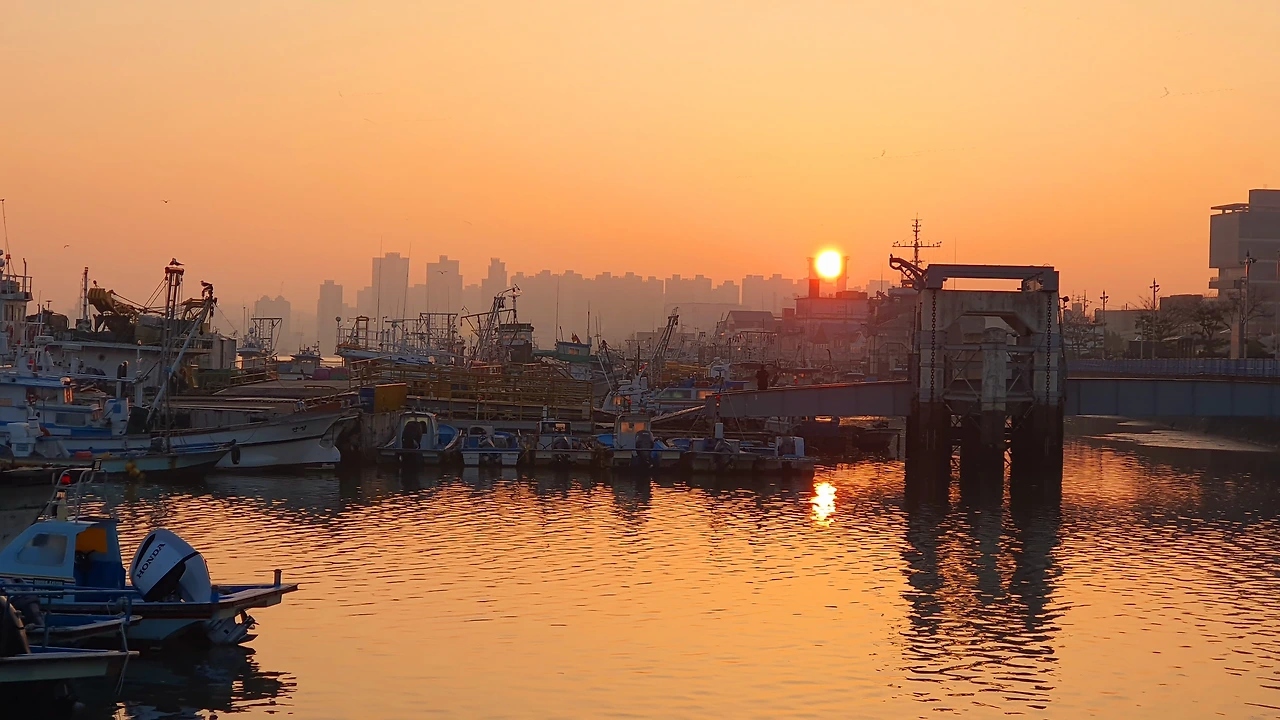 군산 바다가 잠에서 깨어나 붉게 타오릅니다