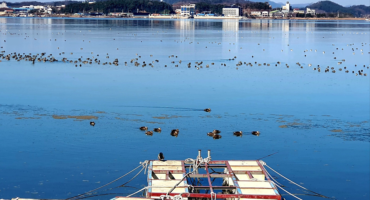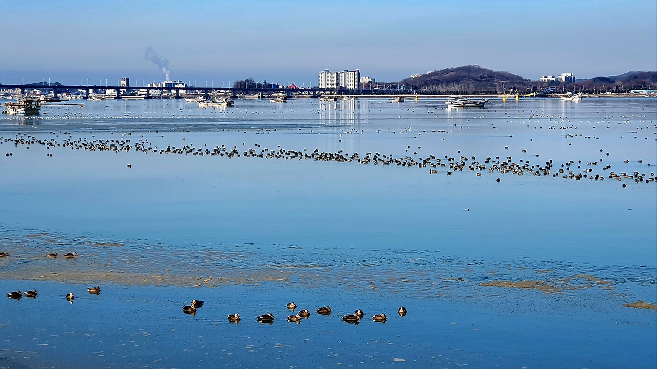 요즘 군산의 구경거리는 아무래도 바닷가와 강가에서 진을 치고 노니는 새들이죠. 어제는 금강하구둑변을 드라이브 하다가 수천여마리의 오리떼들을 보고 차를 멈추었어요. 꿩대신 닭이라고, 지난 주말 가창오리군무를 놓친 바람에 ‘어? 쟤네들은 뭐야?’하며 다가갔죠. 흰죽지오리라고 하더군요. 마침 썰물 때라 유유히 강물따라 미끄러지는 모습을 한동안 바라보았네요. 간간이 머리가 비단초록색인 청둥오리도 보이고, 고니인지 백로인지 하얀 오리들도 있구요. 사진을 찍을수록 장비욕심이 난다는 말을 실감하는데요. 눈도 나빠서 덜 보이니 답답하기만 했지요. 쓰고 있는 안경 세 개를 다 들고 다녀야 되나... 일단 해상도 높은 핸드폰과 망원경을 구비할까... 하여튼 모르는 게 약이 될 때가 많다는 걸 다시 한번 느꼈답니다. 그나마 주섬주섬 오리들의 모습 몇 장을 담고나니 밥 먹은 게 조금 소화가 되었으니 오리풍경이 천연소화제였지요. 지난주에는 초등 중등 학생들의 졸업식이 많았는데요, 학원생들 모두 졸업식장에 가볼 수는 없어서, 신권을 준비하여 졸업축하금으로 선물로 주었네요. 뭐니뭐니해도 머니(money)가 최고라고 우리 학생들도 엄청 좋아해서 저 역시 행복했습니다. 제가 외식 몇 번 줄이면 많은 사람이 행복할 수 있는 작은 일. 더 멀리, 더 많이 살피는 눈과 마음을 가져야겠다 생각했지요. 소한이 지나간 자리에 머무는 냉기 는 위세당당, 설상가상이라고 오늘은 눈비 소식이 있네요. 겨울이라 추운 것이 아름답다고 말하고 싶어도 막상 몸이 움츠려들면 마음도 좁아지는 반응에 머리를 흔들흔들. 감기예방에 좋은 따뜻한 물과 차를 상시복용하세요. 오늘은 류시화시인의 <새와 나무>입니다. 봄날의산책 모니카