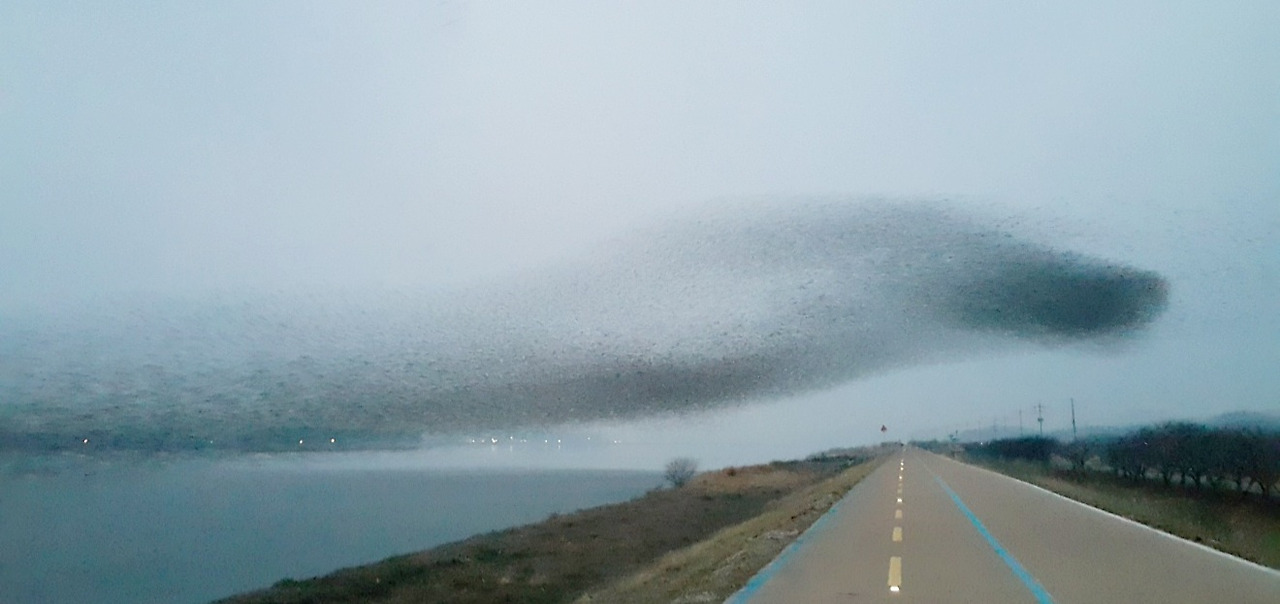 자연 다큐멘터리를 보면 신기함에 가득 찬 자연생태계의 모습을 볼 수 있지요. 하지만 이런 영상을 누가 담았을까를 생각해보면 그야말로 그 기자의 노고 역시 신기합니다. 어제밤까지 매거진 군산의 2월호 원고를 내기로 약속을 했었죠. 기사 주제가 ‘군산을 찾은 겨울진객 가창오리와 겨울철새들’이야기여서 요즘 종종 금강 하구둑 호수와 성산 나포십자뜰을 찾았었습니다. 꼭 기사 때문만은 아니었지요. 작년에 제 머리 위에서 수만 마리가 춤추는 가창오리군무 속에 서 있었던 그 황홀한 기억 때문에 혹시나 그런 행운이 또 한번 올까하고 인사하러 갔었네요. 감기가 쉬이 물러나지 않아서 계속 기침을 안고 살고 있던 판인데... 이 욕심 때문에 비바람 속에서 한 시간가량 서 있어도 오리들이 제자리만 맴돌뿐 비상하지 않는거예요. 물론 결국 제가 후퇴했지요. 하늘에서 함박눈처럼 쏟아질 가창오리의 비상과 하강을 생각했지만 어림 반푼어치도 건지지 못하고 오히려 기침세례에 완전 넉다운 됐어요. 돌아와서 쉬고 있자니 자연스레 자연 다큐멘터리 기자가 생각나더군요. ‘정말 대단한 사람들...’ 다행히 왔다갔다 하며 곁다리로 찍었던 큰기러기, 쇠오리, 갈매기, 청둥오리, 백로들과 나눈 인사로 기사 글을 마무리했네요. 운 좋게도 지인들 중 새박사, 나무박사, 꽃박사 등 자연생명체를 잘 아는 분들이 있어서 참 좋습니다. 이름을 모를 때마다 네이버 검색보다 정확하게 알려주는 분들이라서요~~ 하여튼 금강호에 머무는 가창오리는 전 세계 가창오리(약 35-40여만 마리 추정)의 상당수가 몰려온다 합니다. 다른지역에 가지 않고 이곳에 머무는 것도 군산의 큰 복이라 생각하구요. 1월 말을 기점으로 그들도 자기 고향인 시베리아도 돌아갈 준비를 하니, 혹시라도 시간이 나시면 꼭 가보시길 추천합니다. 사랑하는 사람과 드라이브하며 아름다운 나포의 십자뜰과 금강호의 풍광도 즐감하시구요. 오늘은 남진우 시인의 <겨울새>입니다. 봄날의 산책 모니카