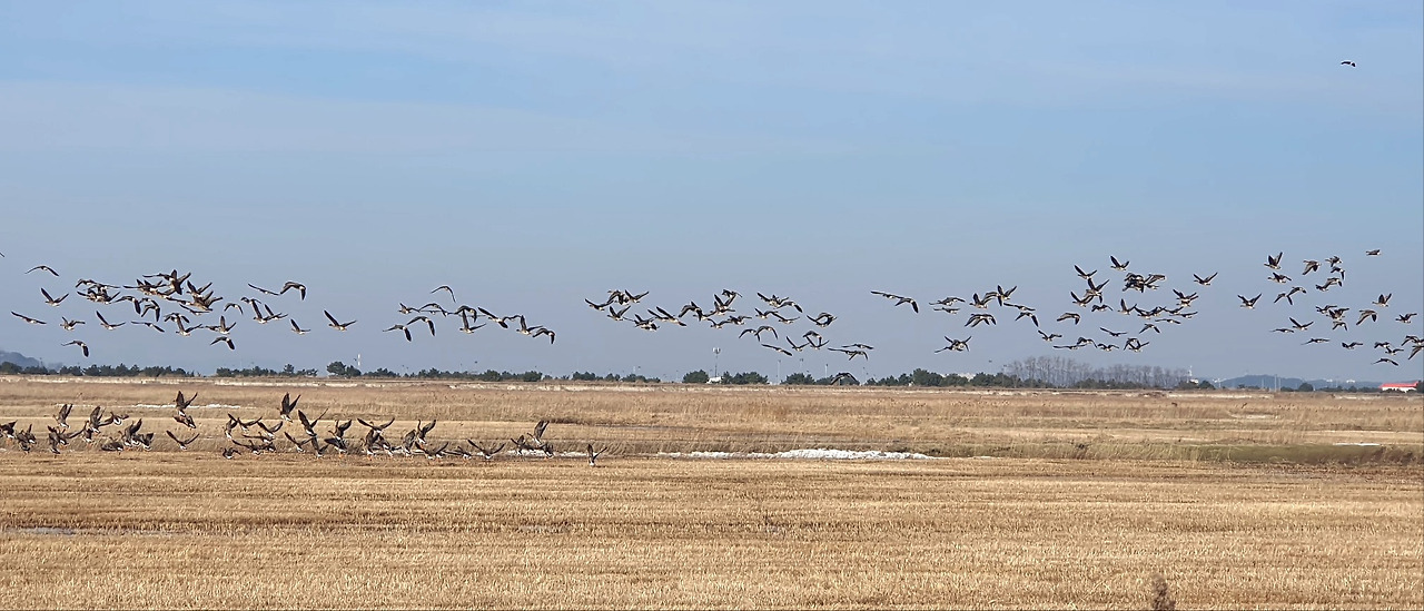 ’사람이 사람을 만나 서로 좋아하면 두 사람 사이에 물길이 튼다.(마종기 시인의 <우화의 강>에서)‘는 표현이 있지요. 어제 한국시낭송예술원 회원들과 떠난 소풍은 미지의 물길을 트는 시간이었습니다. 새만금 역사 30년이 넘도록, 30조 가까운 엄청난 돈이 들어갔어도, 그 끝을 알 수 없는 새만금 땅의 간척사업. 분명한 것은 제 생전에는 결코 볼 수 없는 새땅 새만금. 그러니 지금이라도 많이 봐 두어야 합니다. 시멘트와 아스팔트, 공장, 아파트로 뒤덮일 그 땅을 부분적이나마 원시림의 모습을 간직하고 있는 지금 이 순간을 기억해야 됩니다. 시를 사랑하는 회원들이라서 그런지, 생각보다 길었던 소풍일정에 힘들었을텐데도 갈대너머 노니는 큰 기러기보다 더 우아하게 환한 미소로 대답해주셔서 고마웠습니다. 아마도 십여명의 사람들 사이에 트인 물길 덕분에 오랜만에 새만금 강과 언덕, 갈대, 새들도 산소방울 가득 내뿜으며 심장 쿵쿵 뛰는 행복을 느꼈을겁니다. 자연 속에서 하루를 보냈으니 오늘은 얌전히 글자와 미팅을 좀 해야겠어요... 자연이 주는 생기만큼이나 글자가 전하는 지혜의 보물창고에 들어가는 일, 엄청 매력적인 일이죠. 1월의 마지막 일요일이니, 1월의 문턱에 서서 다짐했던 일이 잘 걸어가고 있는지도 두 눈 크게 뜨고 살펴볼거예요^^ 오늘은 장석남 시인의 <강 1 – 흘러감>입니다. 봄날의 산책 모니카