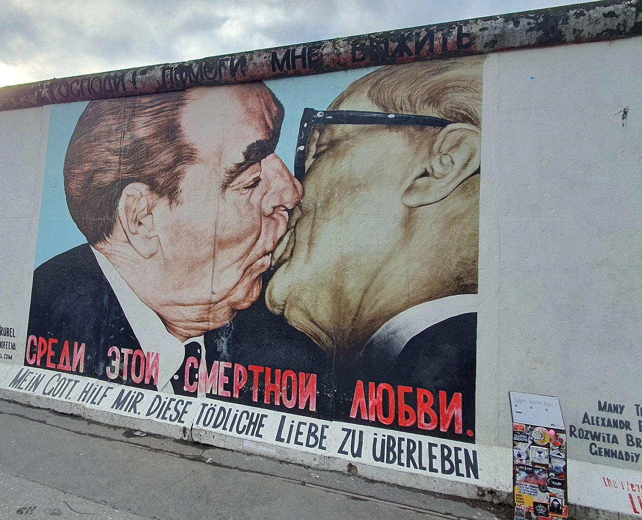 무너진 장벽 위에 피어난 그래피티(graffiti)의 매력. 독일 베를린의 ’이스트 사이드 갤러리‘와 ’장벽기념관‘의 벽에서 보았습니다. 1.3km에 이르는 이 장벽은 슈프레강변을 따라 세계미술가들과 일반인들이 만든 그래피티가 볼거리인데요, 그 중 ’형제의 키스‘로 알려진 소련공산당서기 브레즈네프와 동독수상의 호네커의 열정적 키스 속에는 독일통일의 숨은 공로가 들어있습니다. 당연히 우리나라 남북도 이런 키스를 이끌어낼수 있는 숨은 저력이 있음을 희망하면서 붉은색 다리 ’오버바움 다리(18세기 건축)‘를 건너 베를린 중심부로 들어섰습니다. 박물관 섬이라는 별칭만큼이나 즐비한 각종 박물관들의 거리를 지나 브란덴부르크 문, 홀로코스트 추모비공간, 연방의회의사당, 포츠담광장, 파노라마 풍크트, 베를린 돔(독일 최대의 개신교교회, 루터와 칼뱅의 동상있음) 등을 돌아보았네요. 훔볼트 베를린대학과 그 앞의 중고거래 책 판매모습, 시립도서관 내 문화전시회, 두스만 서점에서 ’82년생 김지영‘ 한국인 책을 산 것이 기억에 남아요. 무려 18000여 보를 걸으며 왔다리 갔다리 했더니, 그리고 독일에서의 마지막 밤이라 그런지, 이제는 사람들도 거리들도 대중교통도 모두 정들어 보이더군요. 아, 오늘도 또 깨알자랑하나 할까요?