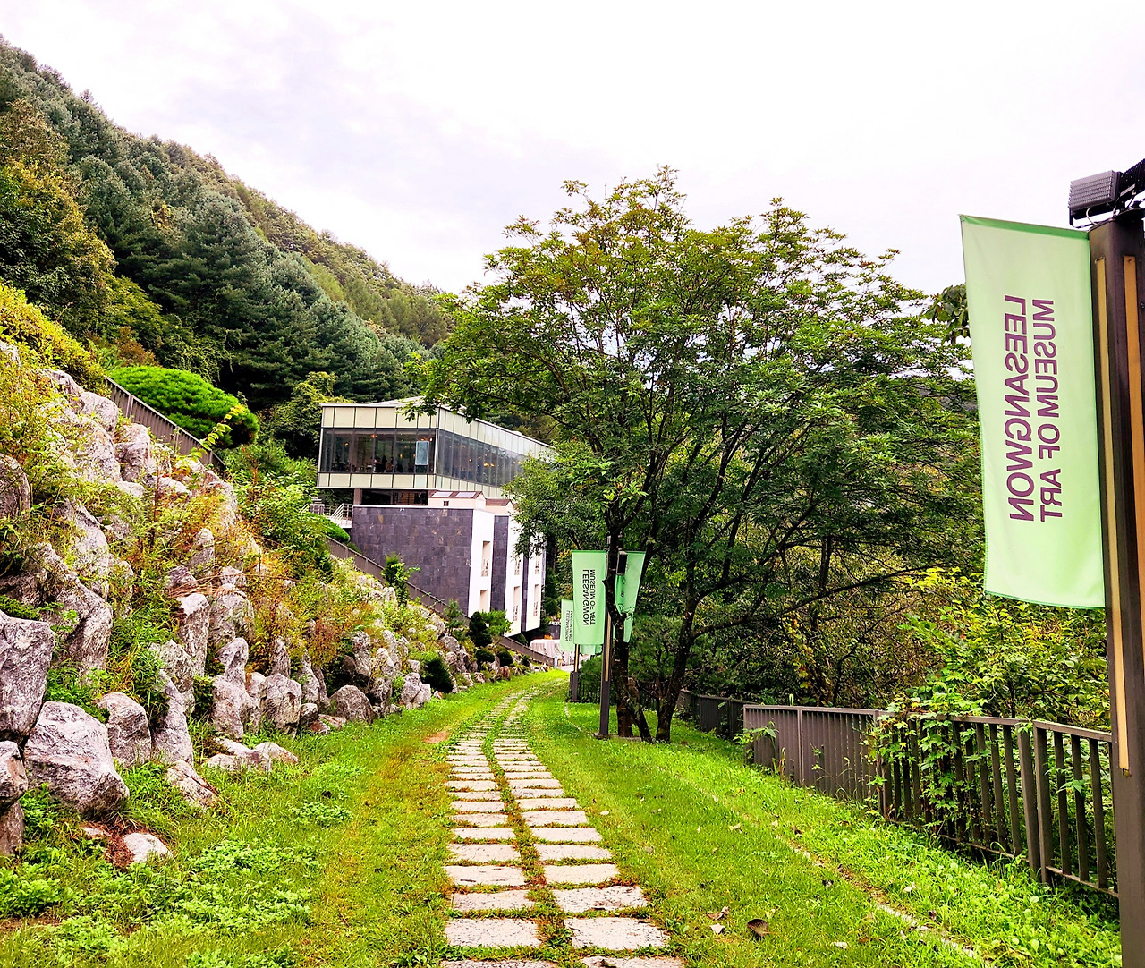 이상원 미술관 풍경, 오른쪽으론 산 자락 따라 물 맑은 계곡이 이어진다.
