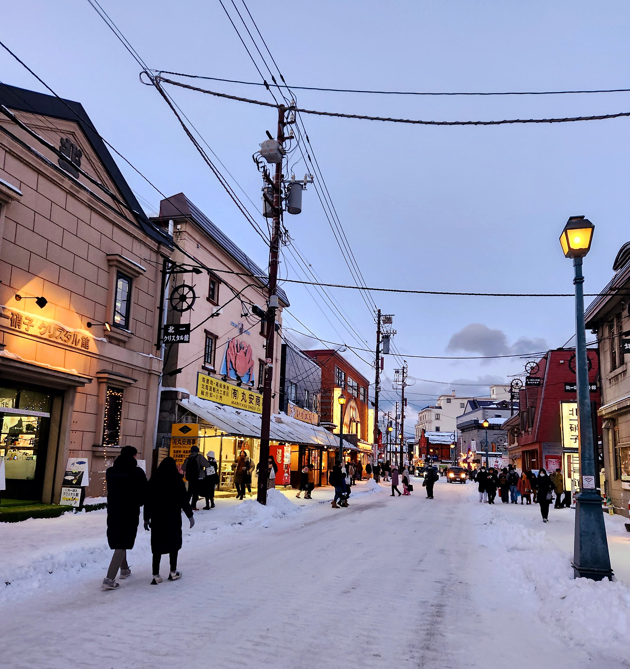 오타루 거리 풍경. 눈 덮인 세상에 황혼이 내리면 마음에 등불이 켜지듯 따스해진다.