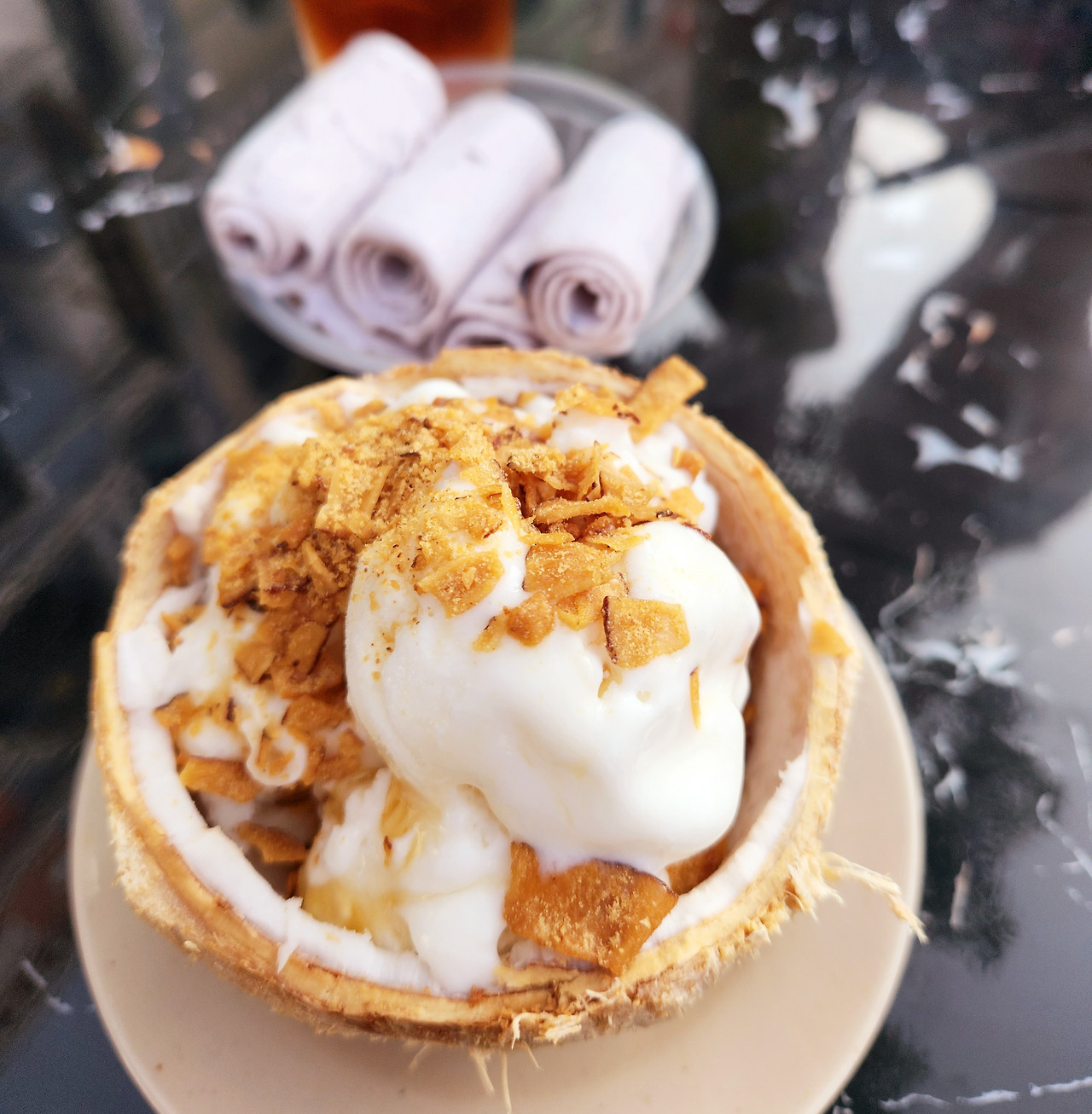 지역 특산물인 코코넛도 음식 메뉴에서 빼놓을 수 없다. 얼음과 함께 시원하고 달콤하게 마시는 코코넛 커피가 유명하고, 부드럽고 달달한 코코넛 아이스크림도 인기다.