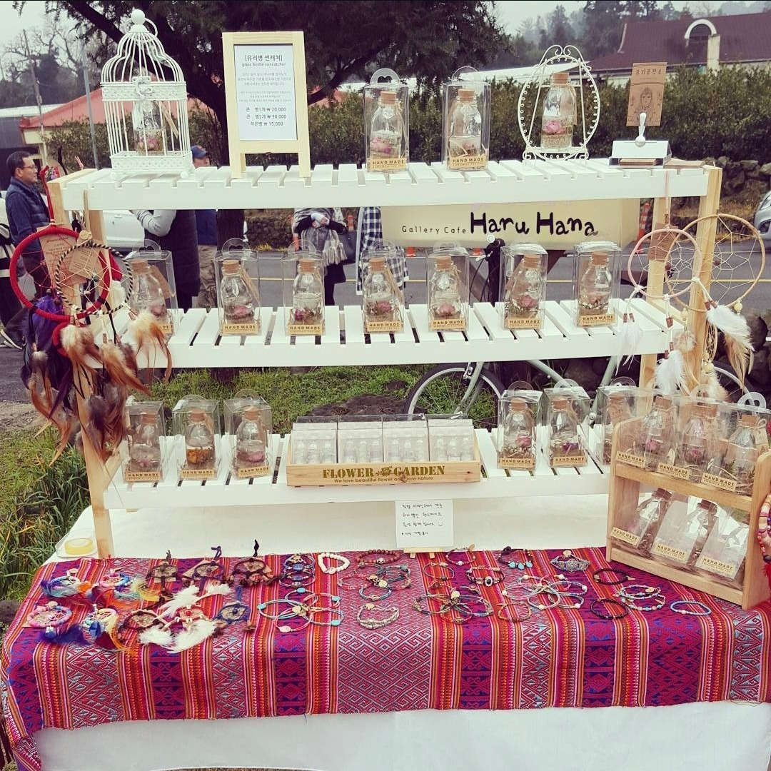 그 무렵 제주에서는 프리마켓이 막 생기기 시작했다. 손으로 무언가를 만드는 걸 좋아해서 드림캐쳐와 크리스털을 유리병 안에 매달아 만든 유리병 썬캐쳐를 개발해 판매하기로 했다.