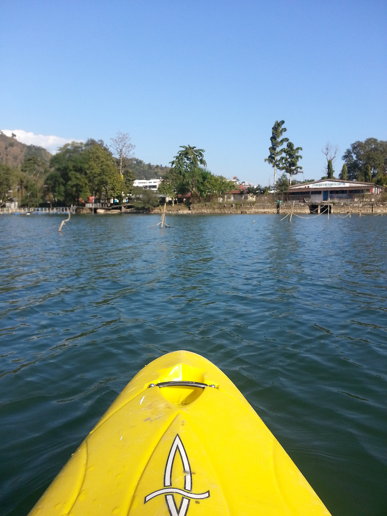 포카라 호숫가에서는 카약을 대여할 수 있었다. 1시간 대여료는 약 2천 원 정도였고, 구명조끼와 방수백도 함께 대여해 줬다. 짐은 방수백에 넣고 직원이 카약을 호숫가까지 옮겨 주었다.