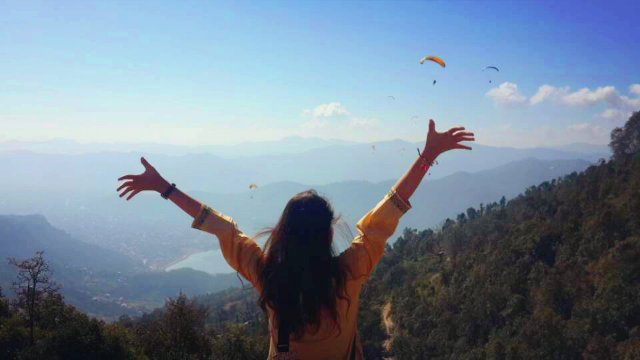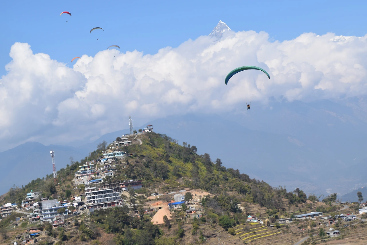 페러글라이딩은 이전에 경험한 적이 있었고 재미있었던 기억이 떠올랐다. 차로 산꼭대기의 활공장까지 이동하며 바라본 풍경만으로도 이미 충분히 감동적이었다. "원, 투, 쓰리, 렛츠고!" 하는 외침과 함께 앞으로 발을 내딛자 몸이 공중으로 붕 떠올랐다. 하늘을 날며 바라본 히말라야와 페와호수, 하얀 구름들, 그리고 두 뺨을 스치던 시원한 바람은 잊을 수 없는 순간이었다.