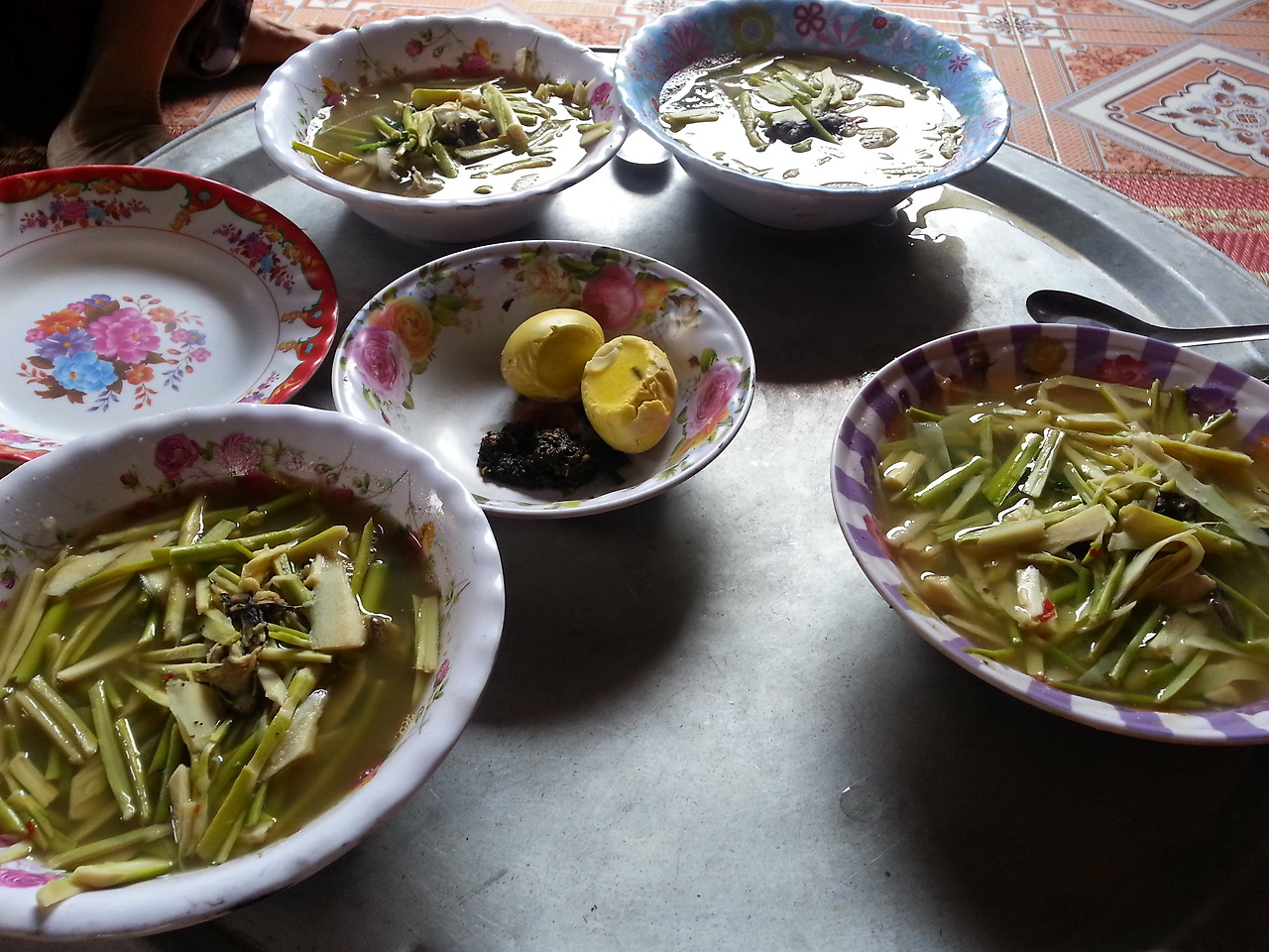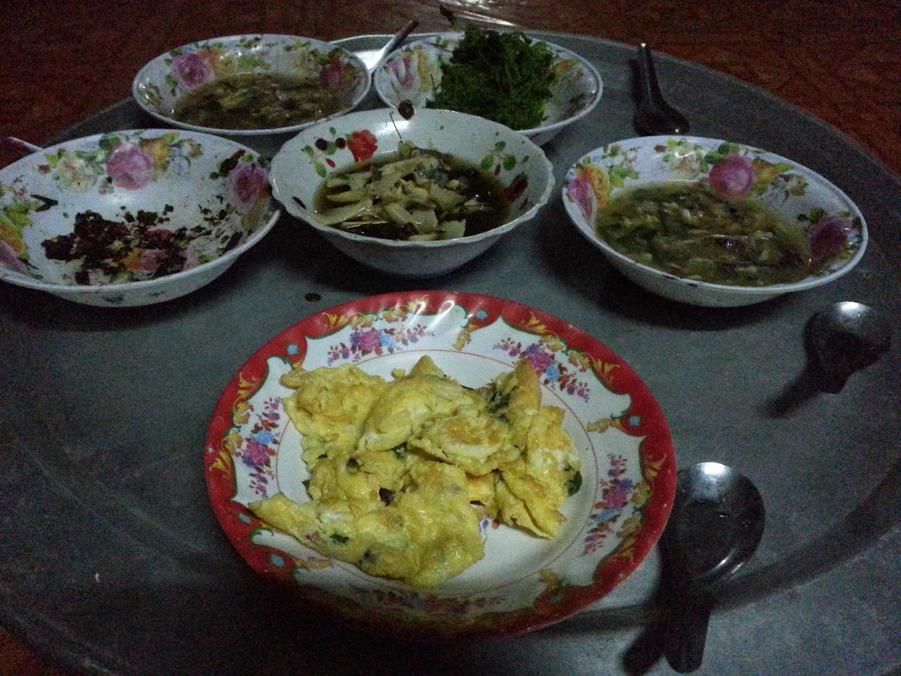 식사 시간이 되었고 야채가 들어간 국과 시냇가에서 볼 수 있는 우렁이를 삶은 요리가 나왔다. 더운 기후 탓인지 간이 짰고, 웬만하면 음식을 가리지 않고 잘 먹는 편이었지만 음식은 조금 입맛에 맞지 않았다.