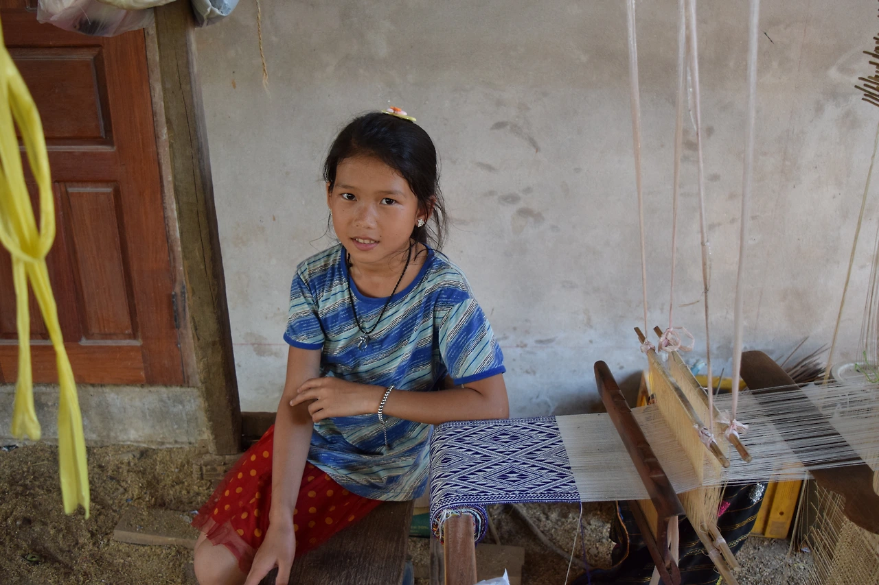 이 마을은 직조를 하는 곳이었다. 대부분의 집은 2층 구조로, 1층 그늘 아래에서 여자들이 베틀을 사용해 직물을 짜고 있었다. 집집마다 개성을 담은 직물들은 너무 예뻤고, 방비엥이나 비엔티엔 같은 도시로 가면 가격이 열 배는 뛸 것 같았다. 직물을 구입하고 싶었는데 이곳에는 영어를 할 줄 아는 사람이 없었다. 더군다나 어르신들은 라오스 글자를 읽지 못했기에 번역기도 무용지물이었다. 결국 바디랭귀지로 소통할 수밖에 없었다.