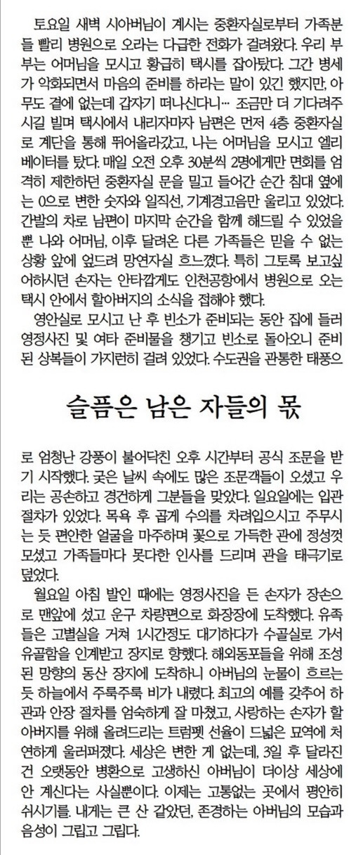아버님의 병세가 위중해지고