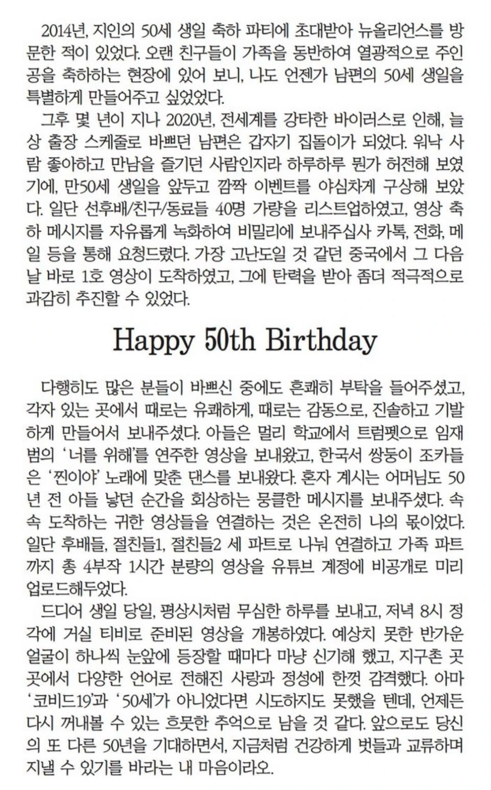즐겁고 행복한 another 50 yrs를 바라는 마음으로