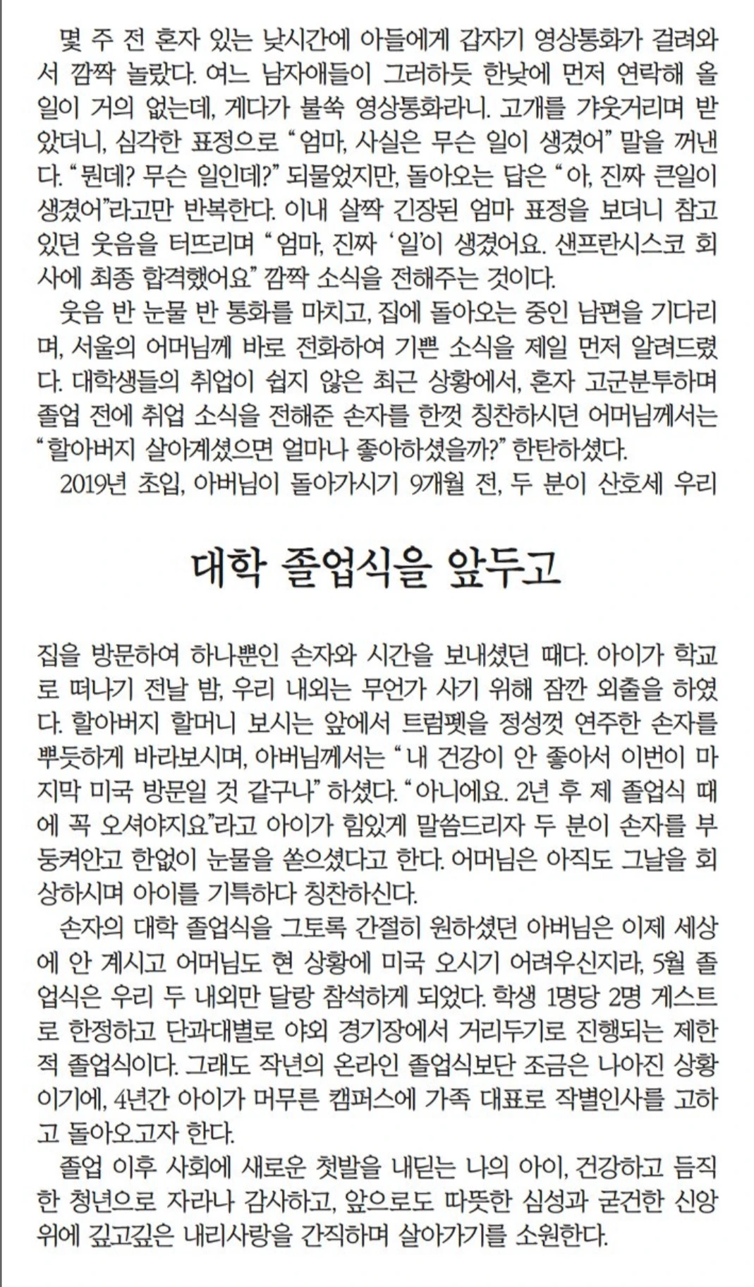부모로서 멀리서 딱히 도와줄 수 있는 것도 없고