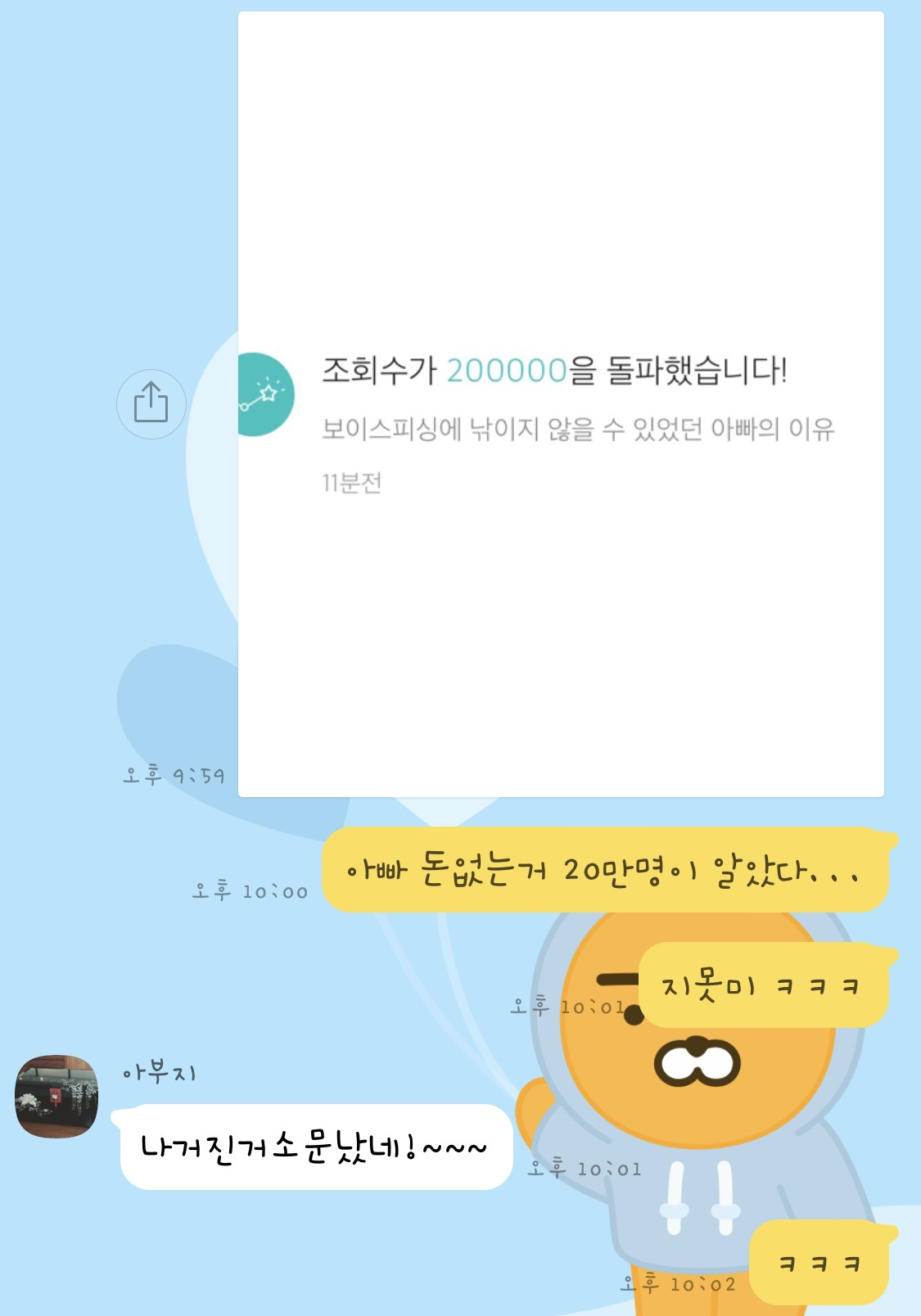 아부지 팔아서 다음 메인에 등극하고, 12만 조회수를 넘어가고 있습니다. 아부지 지못미..