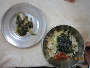 - 미역국, 육개장, 비빔밥, 마파두부덮밥, 제육볶음, 깻잎찜, 김말이떡, 김