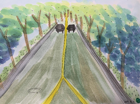 등원길은 흐르는 양재천을 따라 나 있는 뚝방길이었고, 양쪽의 높이 솟은 나무들이 남이섬의 메타세쿼이아 길을 걷는 듯 높고 파릇파릇하면서도 울창했던 것 같다. 그윽한 김동률의 목소리로 출발하는 가뿐한 마음을 전하는 노래 <출발>과 아이들 동요를 돌아가며 틀면서 드라이빙했다.