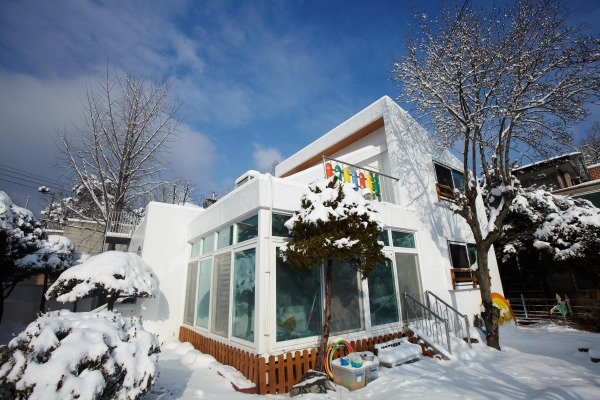 함께크는어린이집은 주택가에 떡하니 자리잡고 있었는데, 단독집이었다. 대문을 열자 키가 크고 작은 나무들도 있었다. 마당이 있었고, 봄이 되면 꽃이 필 것 같았다.